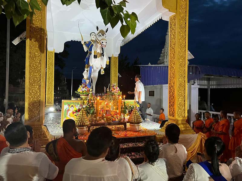 ភ្នំពេញ៖ឧត្តមសេនីយ៍ទោ ស៊ិន ណារិទ្ធ ជំនួយការផ្ទាល់ ឯកឧត្តមទេសរដ្ឋមន្ត្រី មាស សុភា និងជានាយរងសេនាធិការកងទ័ពជើងគោគ និងលោកជំទាវ ឆេង រស្មី ព្រមទាំងបុត្រាបុត្រី អញ្ជើញជាកិត្តិយសក្នុងពិធីបុណ្យឆ្លងប្រាសាទរូបសំណាក់សេះស លោកមេទ័ពស្តេចកននិងរាប់បាតព្រះសង្ឃចំនួន៩៩អង្គ នៅវត្តអង្គសិរីសួស្តី (ហៅវត្តសំរោងត្បូង)ក្រោមគំនិតផ្តួចផ្តើមពីព្រះអង្គ ព្រះអាយុវឌ្ឍនវង្ស ទូច ថន ព្រះចៅអធិការវត្តអង្គសិរីសួស្តី ស្ថិតនៅភូមិសំរោងត្បូង សង្កាត់សំរោង ខណ្ឌព្រែកព្នៅ រាជធានីភ្នំពេញ នាថ្ងៃទី០៩ ខែកក្កដា ឆ្នាំ២០២២កន្លងទៅនេះ។