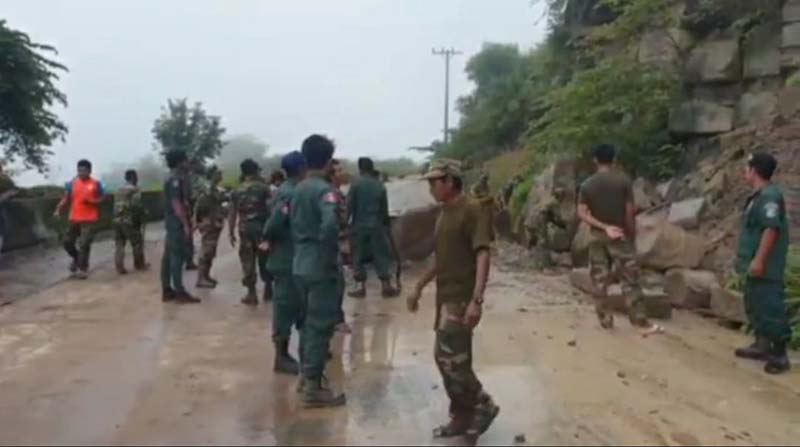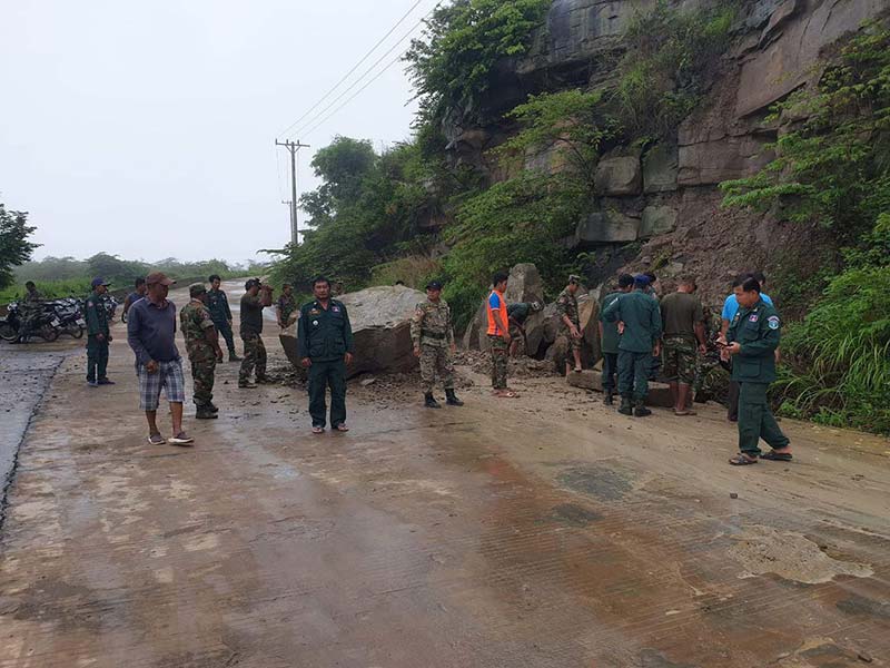 ព្រះវិហារ៖ ដោយសារតែអាកាសធាតុមិនអំណោយផលប៉ុន្មានថ្ងៃនេះមានភ្លៀងធ្លាក់ជាប់ៗគ្នា ធ្វើអោយផ្ទាំងថ្មធំៗរបេះដាច់ចេញពីចង្កេះភ្នំបានរមៀលធ្លាក់មកលើផ្លូវធ្វើដំណើរ ស្ថិតនៅស្រុកជាំក្សាន្ត នៃខេត្តព្រះវិហារ តំបន់ផ្លូវឡើងទៅភ្នំច្រកអានសេះ ជាប់ព្រំដែនកម្ពជា ថៃ ហេតុការនេះបានកើតឡើងនៅថ្ងៃទី១១ ខែកក្កដា ឆ្នាំ២០២២ តែឡូវមកដល់ថ្ងៃនេះកម្លាំងឈជើងការពារព្រំដែនបានយកត្រាក់ទ័រធ្វើការរុញផ្ទាំងថ្មនោះដាក់ទៅម្ខាងផ្លូវរួចរាល់ហើយដើម្បីសម្រួលដល់ការធ្វើដំណើររបស់បងប្អូនប្រជាពលរដ្ឋក្នុងការនាំយកទំនិញផ្សេងៗយកទៅលក់នៅលើតំបន់ច្រកនិងដើម្បីឈានទៅដល់ការបើកច្រកថ្ងៃទី២១ខាងមុខនេះបន្ទាប់ពីបានបិទបញ្ជប់ការឆ្លងរីករាលដាលជម្ងឺកូវិដ១៩អស់រយៈពេលប៉ុន្មានឆ្នាំនេះ៕