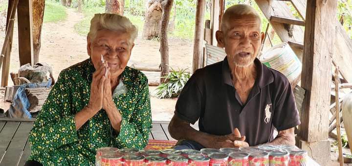 ២-លោកតា ជុំ ស៊ីន ភេទប្រុស អាយុ ៩៥ឆ្នាំ និងប្រពន្ធឈ្មោះ អ៊ុ សឿង អាយុ៧៧ឆ្នាំ ទទួលបាន ថវិកា ២០ម៉ឺនរៀល. អង្ករ២បេ. ត្រីខ២យួរ. សារ៉ុង២. ប៊ីចេង២បញ្ចប់ ។