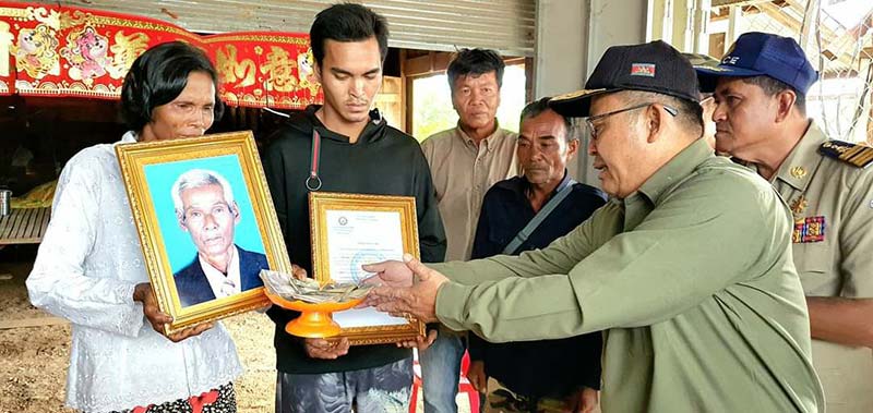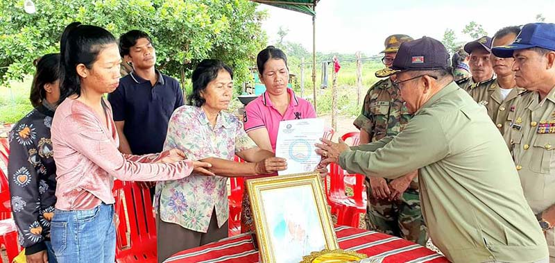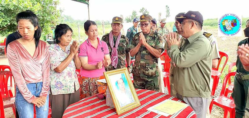 ព្រះវិហារៈ នៅព្រឹកថ្ងៃទី១៣ ខែកក្កដា ឆ្នាំ២០២២នេះ ឧត្តមសេនីយ៍ទោ ច័ន្ទ សុភ័ក្រ្ដា មេបញ្ជាការតំបន់ប្រតិបត្ដិការសឹករងព្រះវិហារ និងជាប្រធានសមាគមអតីតយុទ្ធជនខេត្តព្រះវិហារ បានដឹកនាំក្រុមការងារថ្នាក់ខេត្ត ស្រុក អជ្ញាធរមូលដ្ឋាន បានអញ្ជើញចុះនាំយកថវិកាបេឡាមរណះសង្រ្គោះចំនួន ៨លានរៀលប្រគល់ជូនដល់គ្រួសារសមាជិកអតីតយុទ្ធជនចំនួន០២គ្រួសារ