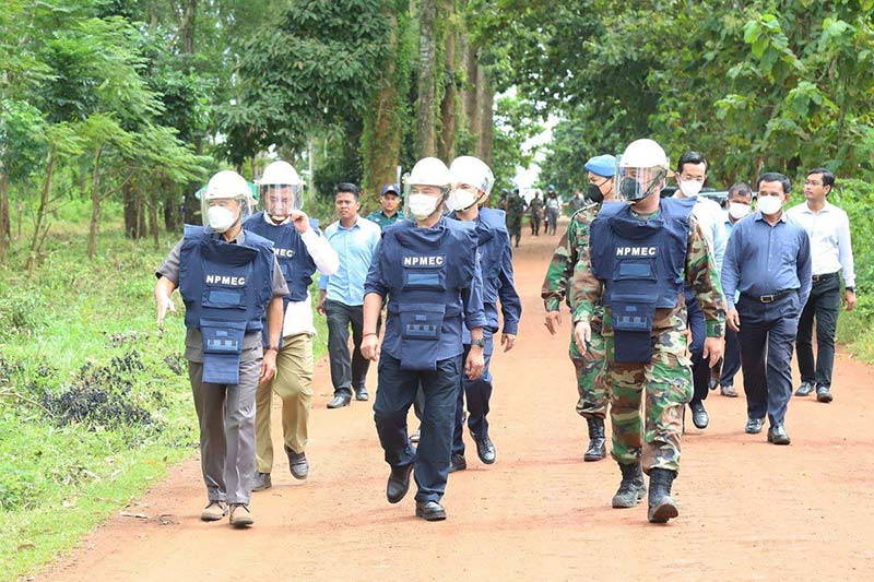 ត្បូងឃ្មុំ ៖ លោកទេសរដ្ឋមន្រ្តី លី ធុជ អនុប្រធានទី១ អាជ្ញាធរមីន តំណាងសម្តេចតេជោ ហ៊ុន សែន នាយករដ្ឋមន្រ្តី នៃកម្ពុជា និងជាប្រធានអាជ្ញាធរមីន និងលោក ជាម ច័ន្ទសោភ័ណ អភិបាលនៃគណៈអភិបាលខេត្តត្បូងឃ្មុំ បានជួបសំណេះសំណាលជាមួយកម្លាំងបោសសម្អាតមីននៃមជ្ឈមណ្ឌលជាតិគ្រប់គ្រងកងកម្លាំងរក្សាសន្តិភាព បោសសម្អាតមីន និងកាកសំណល់សង្រ្គាម (NPMEC) ចំនួន១២៦នាក់ និងបើកការដ្ឋានបោសសម្អាតមីន ក្នុងស្រុកមេមត់ ព្រមទាំងបើកកិច្ចប្រជុំ គណៈកម្មាធិការសកម្មភាពមីនខេត្តត្បូងឃ្មុំ នៅថ្ងៃទី១៥ ខែកក្កដា ឆ្នាំ ២០២២ ។