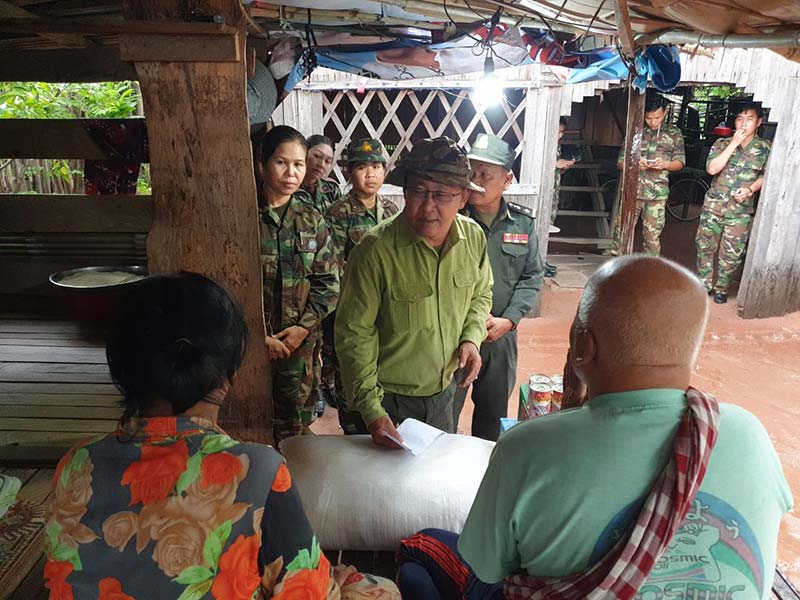 ព្រះវិហារៈ នៅរសៀលថ្ងៃទី ២០ ខែកក្កដា ឆ្នាំ២០២២នេះ ឯកឧត្តម ឧត្តមសេនីយ៍ទោ ច័ន្ទ សុភ័ក្រ្តា មេបញ្ជាការ តំបន់ប្រតិបត្តិការសឹករងព្រះវិហារ បានអញ្ជើញចុះសួរសុខទុក្ខ និងនាំយកអំណោយដ៏ថ្លៃថ្លារបស់ ឯកឧត្ដម ឧត្ដមសេនីយ៍ឯកបណ្ឌិត ហ៊ុន ម៉ាណែត អគ្គមេបញ្ជាការរង កងយោធពលខេមរភូមិន្ឌ និងជាមេបញ្ជាការកងទ័ពជើងគោក និងលោកជំទាវ ផ្ដល់ជូនដល់ពលរដ្ឋក្រីក្រជរានិងពការ ដល់លំនៅដ្ឋាន ចំនួន ០២គ្រួសារ ស្ថិតនៅភូមិភារកិច្ច សង្កាត់ប៉ាលហាល ក្រុងព្រះវិហារ ខេត្ដព្រះវិហារ។