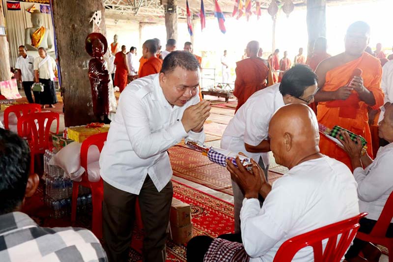 ក្នុងនោះដែរ លោកឧត្តមសេនីយ៍ទោ ស្នងការ បានប្រគេន បច្ច័យ និងទេយ្យទាន រួមជាមួយសម្ភារៈបរិក្ខាប្រគេនព្រះសង្ឃក្នុងមួយវត្តៗទទួលបាន ៖ ទៀនព្រះវស្សា០១គូរ. សាដក់០១.អង្ករ៥០គីឡូក្រាម. មី០១កេស. ទឹកសុីអុីវ០១យួរ. ត្រីខ០១យួរ .សៀងចំនួន៥លីត្រ. ទឹកសុទ្ធ៩យួរ និងបច្ច័យ ២០០.០០០រៀល។