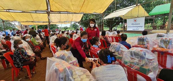 នៅក្នុងឱកាសនោះដែរឯកឧត្តម ប្រាក់ សុវណ្ណ ប្រធានគណ:កម្មាធិការសាខា បានពាំនាំនូវប្រសាសន៍ផ្តាំផ្ញើសាកសួរសុខទុក្ខពីសម្តេចកិត្តិព្រឹទ្ធបណ្ឌិត ប៊ុន រ៉ានី ហ៊ុនសែន ប្រធានកាកបាទក្រហមកម្ពុជា ដែលសម្តេចតែងតែគិតគូរពីសុខទុក្ខរបស់បងប្អូនជានិច្ចពោលគឺ ទីណាមានការលំបាកទីនោះមានកាកបាទក្រហមកម្ពុជា និងបានផ្តាំផ្ញើសូមអោយថែរក្សាសុខភាព ត្រូវមានអនាម័យ និងលាងសម្អាតដៃជាមួយសាប៊ូឱ្យបានជាប់ជាប្រចាំ ចូលរួមការពារទប់ស្កាត់មេរោគកូវីដ១៩ និងជាពិសេសជំងឺគ្រុនឈាម ដែលបង្ករឡើងដោយមូសខ្លាញីខាំ និងអំពាវអោយប្រុងបរយ័ត្នចំពោះកុមារតូចៗ ព្រោះរដូវនេះទឹកកំពង់ឡើង។