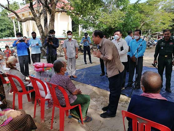 លោកបានបន្ថែមថា ប្រមុខរាជរដ្ឋាភិបាលបានផ្តល់អំណោយតាមរយៈមន្ទីរសង្គមកិច្ច អតីតយុទ្ធជន និងយុវនីតិសម្បទាខេត្ត ដើម្បីជួយដល់គ្រួរសារ ងាយរងគ្រោះនៃគម្រោងសុខមាលភាពសង្គម សម្រាប់ជួយដល់ប្រជាពលរដ្ឋនៅក្នុងខេត្តកំពង់ធំ ដល់គ្រួសារចាស់ជរា ជួបការលំបាក ស្រ្តីមេម៉ាយ ជនពិការ អំណោយដែលបានផ្តល់ជូននាពេលនេះមានចំនួន១៥០គ្រួសារ ក្នុងមួយគ្រួសារៗទទួលបានអង្ករ ត្រីខ ទឹកត្រ និងសម្ភារមួយចំនួនដែរ។