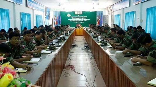 លោកអនុសេនីយ៍ឯក កែ ចាន់ធឿន នាយរងការិយាល័យទី៣ បានឡើងអានសេចក្តីព្រាងរបាយការណ៍បូក សរុបប្រចាំខែកក្កដា និងទិសដៅអនុវត្តបន្តប្រចាំខែសីហា ឆ្នាំ២០២២ និងការវាយតម្លៃចំណុចខ្លាំង ចំណុចខ្សោយ ដែល បណ្តាអង្គភាពចំណុះបញ្ជាការដ្ឋានតំបន់ប្រតិបត្តិការសឹករងកំពង់ធំ អនុវត្តន៍សម្រេចបានដើម្បីដាក់ជូនអង្គប្រជុំពិភាក្សា បំពេញបន្ថែម ។ ឧត្តមសេនីយ៍ត្រី ញូងធី មេបញ្ជាការរងនាយសេនាធិការ នៃបញ្ជាការដ្ឋានតំបន់ប្រតិបត្តិការសឹករងកំពង់ធំ បាន ឡើងបញ្ជាក់ជូនការអនុវត្តន៍ភារកិច្ចសំខាន់ៗមួយចំនួនក្នុងខែកក្ដដាកន្លងមក និងបានណែនាំអំពីភារកិច្ចសំខាន់ៗ ដែល ត្រូវអនុវត្តន៍ក្នុងខែសីហាខាងមុខ ។ បន្ទាប់មកសមាជិកអង្គប្រជុំ បានពិភាក្យាយ៉ាងល្អិតល្អន់ ក្នុងការបំពេញបន្ថែមលើ របាយការណ៍និងទិសដៅដែលបានដាក់ចេញ។ ឧត្តមសេនីយ៍ទោ សោម ស៊ុន បានមានប្រសាសន៍ បូកសរុបវាយតម្លៃលទ្ធផលការងារ ដែលអង្គភាពសម្រេច បានក្នុងខែកក្កដាកន្លងមកប្រកបដោយជោគជ័យតាមផែនការដែលថ្នាក់លើបានប្រគល់ និងបានថ្លែងនូវការកោត សរសើរចំពោះថ្នាក់ដឹកនាំគ្រប់លំដាប់ថ្នាក់ មេបញ្ជាការគ្រប់កងឯកភាព ដែលបានខិតខំបំពេញភារកិច្ចទទួលបានលទ្ធ ផលល្អប្រកបដោយស្មារតីទទួលខុសត្រូវខ្ពស់ ។
