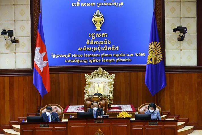សូមបញ្ជាក់ថា សេចក្តីព្រាងច្បាប់ធម្មនុញ្ញស្តីពីការស្នើសុំធ្វើវិសោធនកម្ម មាត្រា១៩ ថ្មី(មួយ) មាត្រា៨៩ មាត្រា៩៨ថ្មី មាត្រា ១០២ថ្មី មាត្រា១១៩ថ្មី (មួយ) និងមាត្រា១២៥ ថ្មី នៃរដ្ឋធម្មនុញ្ញ និងមាត្រា ៣ថ្មី និងមាត្រា ៤ថ្មី នៃច្បាប់ធម្មនុញ្ញនៃព្រះរាជាណាចក្រកម្ពុជា ត្រូវបានរដ្ឋសភាអនុម័តទាំងស្រុងក្រោមសំឡេង ១០៥ លើ១០៦ ក្នុងសម័យប្រជុំពេញអង្គនាព្រឹកថ្ងៃទី២៨ ខែកក្កដា ឆ្នាំ២០២២កន្លងទៅ៕SKS