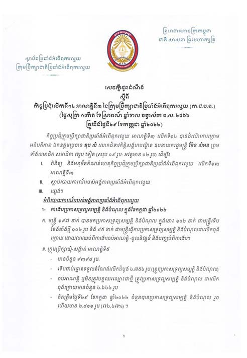 បើនិយាយពីអង្គភាពប្រឆាំងអំពើពុករលួយ ក្រោមការដឹកនាំពីលោក ទេសរដ្ឋមន្រ្តី ឱម យ៉ិនទៀង មន្រ្តីរបស់រដ្ឋាភិបាលមិនតិចនាក់ឡើយត្រូវចាប់ខ្លួននិងផ្ដន្ទាទោស ក្នុងនោះរាប់ទាំងមន្រ្តីធម្មតា និងមន្រ្តីជាន់ខ្ពស់ ។