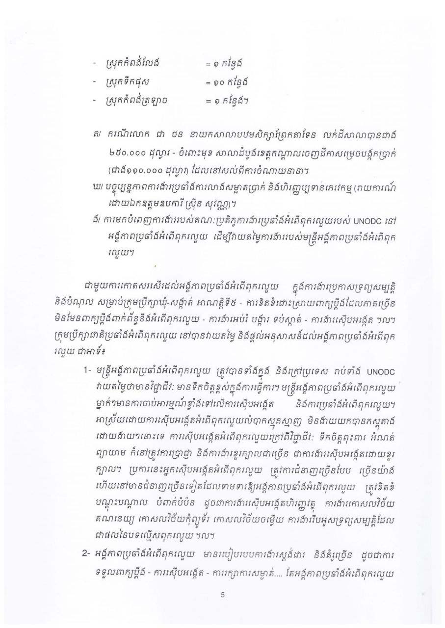 លោកទេសរដ្ឋមន្ត្រីឱម យ៉ិនទៀង បញ្ជាក់ទៀតថាចុងក្រោយ ACU បានរុករកពីថ្ងៃទី០៥ខែមីនា ដល់១២ ឧសភាឆ្នាំ២០២២ រកឃើញប្រាក់ចំនួន ៨៥ម៉ឺន ៤ពាន់ ៦៤ដុល្លារអាមេរិក និងប្រាក់រៀលចំនួន៧លាន ៧៣ ម៉ឺន៩០០រៀល ហើយកាលពីថ្ងៃទី២៥ខែកក្កដាឆ្នាំ២០២២ថ្មីៗនេះ ក៍បានប្រគល់ប្រាក់សំណងដល់បេក្ខជនរងគ្រោះចំនួន៤១នាក់ទៀតសរុប២៧ម៉ឺន៤ពាន់២០០ដុល្លារអាមេរិក៕