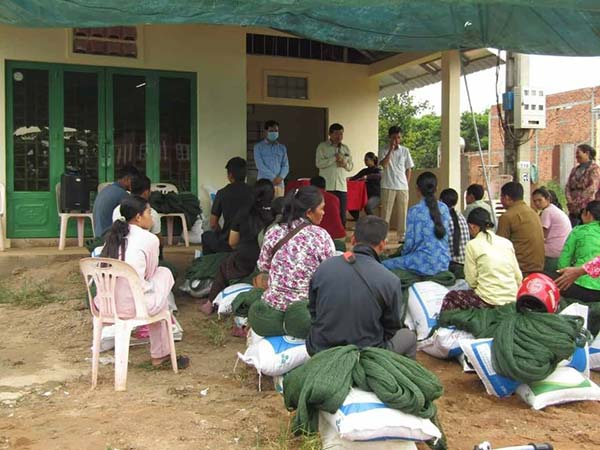 ពិធីចែកសម្ភារៈនេះធ្វើឡើង នៅទីស្នាក់ការសហគមន៍កសិកម្មអូខ្លែងពណ៍ ស្ថិតនៅសង្កាត់ប៉ាលហាល ក្រុងព្រះវិហារ ខេត្តព្រះវិហារ។