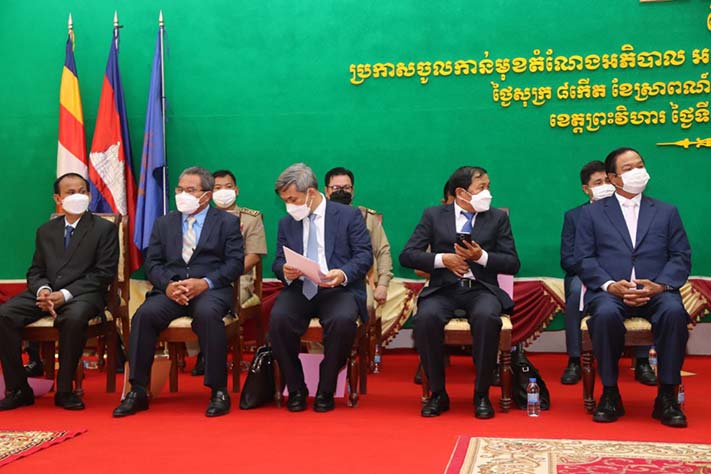 ព្រះវិហារៈ នាព្រឹកថ្ងៃទី០៥ ខែសីហា ឆ្នាំ២០២២នេះ សាលាខេត្តព្រះវិហារ បានរៀបចំពិធីប្រកាសចូលកាន់មុខតំណែង អភិបាលនៃគណៈអភិបាល ១រូប និងអភិបាលរង២រូប ក្រោមអធិបតីភាពដ៏ខ្ពង់ខ្ពស់ សម្ដេច ក្រឡាហោម ស ខេង ឧបនាយករដ្ឋមន្ត្រី រដ្ឋមន្ត្រីក្រសួងមហាផ្ទៃ ពិធីនេះ ក៏មានការចូលរួមពី ទេសរដ្ឋមន្ត្រី មាស សុភា ប្រធានក្រុមការងាររាជរដ្ឋាភិបាលចុះមូលដ្ឋានខេត្តព្រះវិហារ, ទេសរដ្ឋមន្ត្រី គន់ គីម អនុប្រធានទី១ គណៈកម្មការជាតិគ្រប់គ្រងគ្រោះមហន្តរាយ ព្រមទាំងថ្នាក់ដឹកនាំ មន្ត្រីរាជការ កងកម្លាំងប្រដាប់អាវុធ លោក លោកស្រី ប្រធានមន្ទីរ អង្គភាព លោក អភិបាល ក្រុង ស្រុក ជាច្រើនរូបទៀត។