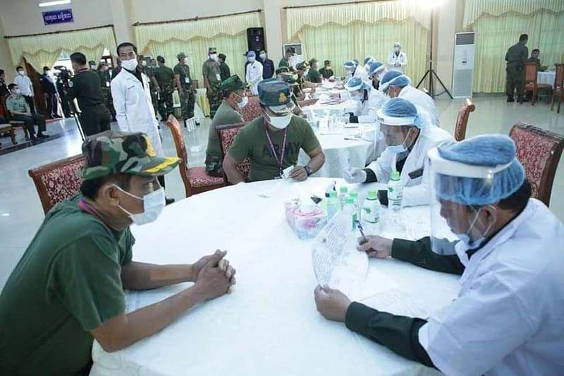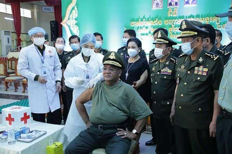 សូមបញ្ជាក់ថា កាលពីថ្ងៃ១០ ខែកុម្ភៈ ឆ្នាំ២០២១ ថ្នាក់ដឹកនាំមួយចំនួនរបស់កម្ពុជា កងទ័ព និងអ្នកសារព័ត៌មាន ដែលមានអាយុចន្លោះពី១៨ ទៅ៥៩ឆ្នាំ បានចាប់ផ្តើមចាក់វ៉ាក់សាំងបង្ការជំងឺកូវីដ១៩ ដែលជាជំនួយរបស់រដ្ឋាភិបាលចិន។
