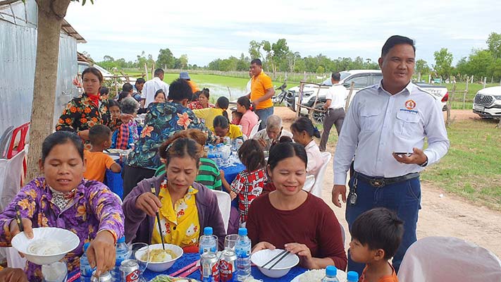 ខេត្តស្វាយរៀង៖លោក ពិន សម្បត្តិ ប្រធាន ក្រុមការងារ គណបក្សប្រជាជនកម្ពុជាចុះជួយ ភូមិ ត្រពាំងធំ ឃុំអង្គប្រស្រែ ស្រុករមាសហែកខេត្តស្វាយរៀង នៅ ថ្ងៃទី ៦ខែសីហាឆ្នាំ ២០២២ នេះ បាន អញ្ជើញ ចុះ ជួប សំណេះសំណាល ថ្លែងអំណរគុណ និង ពិសា អាហារ សាមគ្គី ជាមួយ សកម្មជន យុវជន គណបក្ស ភូមិ ដែល បាន គាំទ្រ គណបក្ស ប្រជាជន កម្ពុជា ។