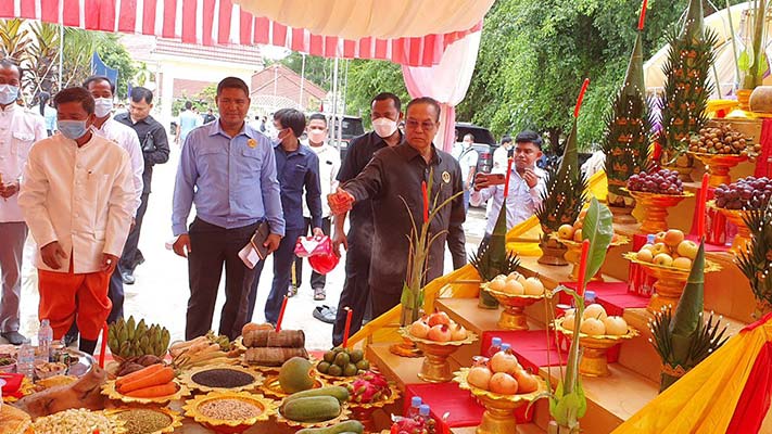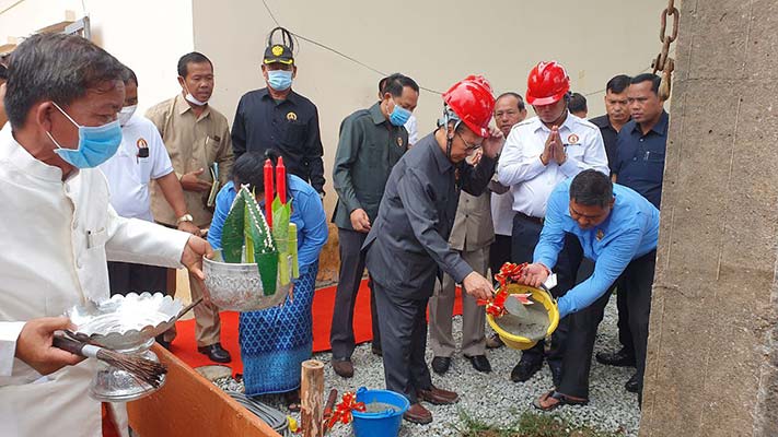 បន្ទាប់មក ឯកឧត្ត ម៉ឹង សំផន បានបន្តចូលរួមក្នុង ពិធីក្រុងពលី បញ្ចុះបឋមសិលា កសាងអាគារទីស្នាក់ការគណបក្សប្រជាជនកម្ពុជា ដែលមានកំពស់ ២ ជាន់ និងអញ្ជើញដាំដើមឈើ រួមមាន ដើមត្នោត សំរាប់លំអរក្នុងបរិវេណទីស្នាក់ការគណបក្សប្រជាជនកម្ពុជា ស្រុកចន្ទ្រា អោយមានសោភណ័ភាពល្អផងដែរ ៕