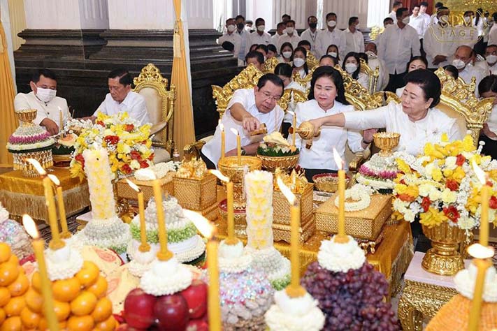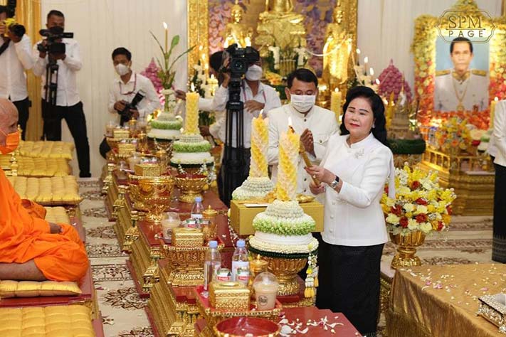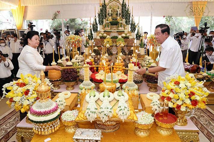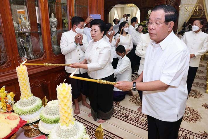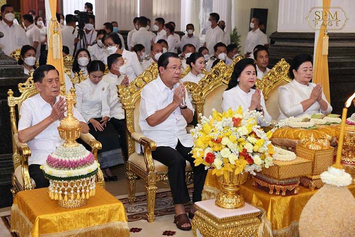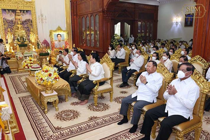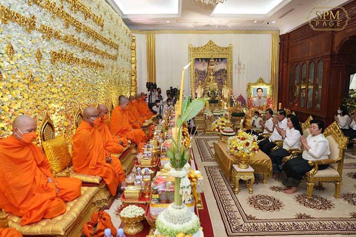 បន្ទាប់មកលោកជំទាវ លាង វួចឆេង ហ៊ុនណេង សម្តេចអគ្គមហាសេនាបតីតេជោ ហ៊ុន សែន នាយករដ្ឋមន្រ្តី នៃព្រះរាជាណាចក្រកម្ពុជា និងសម្តេចកិត្តិព្រឹទ្ធបណ្ឌិត ប៊ុន រ៉ានី ហ៊ុនសែន និងបងប្អូនសាច់ញាតិ បាននិមន្តព្រះសង្ឃ ចំរើនព្រះបរិត្ត នមស្សការព្រះរតនត្រ័យ និងសមាទាននិច្ចសិល សំដែងព្រះសទ្ធម្មវិសេសទេសនា ។ សម្តេច ឯកឧត្តម លោកជំទាវ ត្រូវជាភរិយា បងប្អូន កូន ចៅទាំងអស់ បានធ្វើបទនមសិកា ព្រះរតនត្រ័យ ដើម្បីរំលឹកដល់គុណបុណ្យ ព្រះសម្មា សម្ពុទ្ធព្រះបរមគ្រួនៃយើង ដែលព្រះអង្គត្រាសដឹងនូវអនុត្តរះសម្មាសម្ពុទ្ធធិញាណ និង ព្រះធម៌វិន័យដ៏វិសេសវិសាល បន្សល់ទុកឲ្យពុទ្ធបរិស័ទគ្រប់ជំនាន់ គោរពប្រតិបត្តិជា រៀង ដរាប រហូតមកដល់បច្ចុប្បន្ន និងទៅអនាគត។