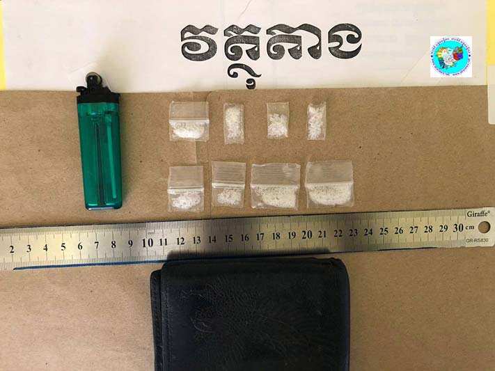 ប៉ូលិសនិយាយថា ជនសង្ស័យឈ្មោះឈន វិសាល ភេទប្រុស អាយុ២៦ឆ្នាំ មានទីលំនៅភូមិព្រែកហូរលិច០១ សង្កាត់ព្រែកហូរ ក្រុងតាខ្មៅ ខេត្តកណ្តាល មុខរបររកត្រីលក់ ។ វត្ថុតាងចាប់យក ម្សៅក្រាមពណ៌ថ្លាសង្ស័យជាសារធាតុញៀនចំនួន០៨ កញ្ចប់ និង កាបូបដៃពណ៏ខ្មៅចំនួនមួយ ។