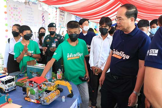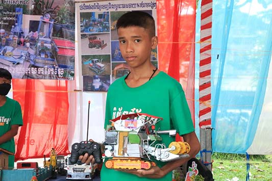 បន្ទាយមានជ័យ ៖ ផ្ទុះការចាប់អារម្មណ៍កុមារាម្នាក់ យកសំរាមច្នៃជាម៉ាស៊ីន ច្រូតស្រូវ ខ្នាតតូចបញ្ជាតេលេ និង បន្ទាប់ពីយកមកបង្ហាញនៅកម្មវិធីតាំងពិព័រណ៍ ស្ទែម ឆ្នាំ២០២២ ក្រោមប្រធានបទ ” ទាំងអស់គ្នាសម្រាប់អាជីវកម្មអនាគត់កាន់តែប្រសើរ” នៅថ្ងៃទី១៦ ខែសីហា ឆ្នាំ២០២២។