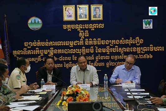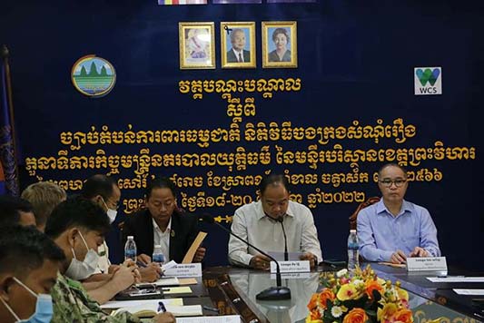 ព្រះវិហារៈ ឯកឧត្តមគីមរិទ្ធីអភិបាលនៃគណៈអភិបាលខេត្តព្រះវិហារបានអញ្ជើញជាអធិបតីក្នុងវគ្គបណ្ដុះបណ្ដាលស្ដីពីច្បាប់តំបន់ការពារធម្មជាតិ នីតិវិធីចងក្រងសំណុំរឿង និងតួនាទីភារកិច្ច របស់មន្រ្តីនគរបាលយុត្តិធម៌ ជូនដល់មន្ត្រីនគរបាលយុត្តិធម៌ ដោយបានសហការរវាងមន្ទីរបរិស្ថាននិង អង្គការសមាគមអភិរក្សសត្វព្រៃ(WCS)ដោយមានការ ឯកឧត្តម កែន សេរីរដ្ឋា អគ្គនាយកនៃអគ្គនាយកដ្ឋានចំណេះដឹង និងព័ត៌មានបរិស្ថាន និងជាប្រធានអង្គការសមាគមអភិរក្សសត្វព្រៃ (WCS) ព្រះរាជអាជ្ញារងអមសាលាដំបូងខេត្តព្រះវិហារ ព្រមទាំងមានការចូលរួមពី លោកប្រធាន អនុប្រធានមន្ទីរ លោកប្រធាន អនុប្រធានការិយាល័យជំនាញចំណុះមន្ទីរ មន្រ្តីនគរបាលយុត្តិធម៌ និងមន្រ្តីអង្គការសមាគមអភិរក្សសត្វព្រៃ (WCS) សរុបចំនួន ៤០នាក់ នៅមន្ទីរបរិស្ថានខេត្តព្រះវិហារ នាថ្ងៃទី១៨ ខែសីហា ឆ្នាំ២០២២។