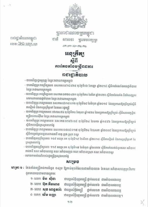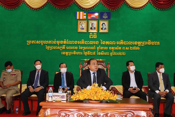 ព្រះវិហារ៖ អភិបាលរងខេត្តព្រះវិហារចំនួន៤រូប ត្រូវបានប្រកាសចូលកាន់តំណែងជាផ្លូវការ នៅរសៀលថ្ងៃទី២៥ ខែសីហា ឆ្នាំ២០២២នេះ ក្រោមអធិបតីភាពលោក អ៊ុំ ម៉ារ៉ា រដ្ឋលេខាធិការ ក្រសួងមហាផ្ទៃ តំណាងសម្ដេចក្រឡាហោម ស ខេង ឧបនាយករដ្ឋមន្ត្រី រដ្ឋមន្ត្រីក្រសួងមហាផ្ទៃ។
