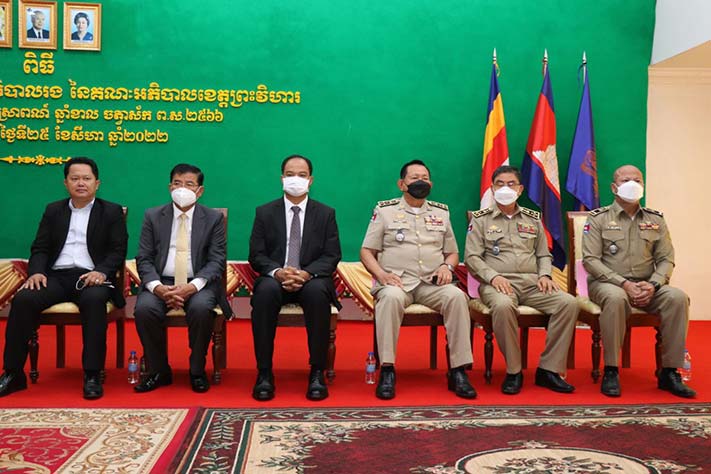 ពិធីនេះមានចូលការរួមពីសំណាក់លោក ប្រធានក្រុមប្រឹក្សាខេត្ត, លោក គីម រិទ្ធី អភិបាលខេត្តព្រះវិហារ និងប្រតិភូអមដំណើរ ព្រមទាំងជួរថ្នាក់ដឹកនាំនៃមន្ត្រីរាជការ កងកម្លាំងប្រដាប់អាវុធគ្រប់ប្រភេទ និងអាជ្ញាធរពាក់ព័ន្ធ ជាច្រើនរូប។
