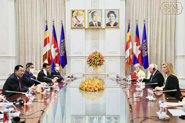 ភ្នំពេញ៖ នៅវិមានសន្តិភាព នាព្រឹកថ្ងៃចន្ទ ៣កើត ខែភទ្របទ ឆ្នាំខាល ចត្វាស័ក ព.ស. ២៥៦៦ ត្រូវនឹង ថ្ងៃទី២៩ ខែសីហា ឆ្នាំ២០២២នេះសម្តេចអគ្គមហាសេនាបតីតេជោ ហ៊ុន សែន នាយករដ្ឋមន្ត្រី នៃព្រះរាជាណាចក្រកម្ពុជា បានអនុញ្ញាតឱ្យលោកជំទាវ អេលីហ្សាបេត វេន ដាញ (Elizabeth Van Duyne) តំណាងរាស្ត្រគណបក្សសាធារណរដ្ឋ មកពីរដ្ឋតិចសាស់ និងគណៈប្រតិភូសមាជិកសភាអាមេរិក និងមានតំណាងរាស្ត្រគណបក្សប្រជាធិបតេយ្យ មកពីរដ្ឋថេនណេសស៊ីផងដែរ ចូលជួបសម្តែងការគួរសម និងពិភាក្សាលើការងារមួយចំនួន ដើម្បីពង្រឹងពង្រីកទំនាក់ទំនង និងកិច្ចសហប្រតិបត្តិការរវាងកម្ពុជា និងសហរដ្ឋអាមេរិក។