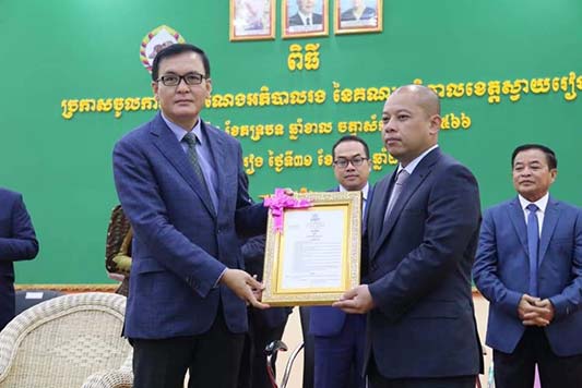 សូមបញ្ជាក់ថា យោងតាមអនុក្រឹត្យលេខ ៦៧៣ អនក្រ.តត ចុះថ្ងៃទី១៨ ខែសីហា ឆ្នាំ២០២២ របស់រាជរដ្ឋាភិបាលកម្ពុជា ត្រូវបានតែងតាំងលោក ប៉េង ពោធិ៍សា ឋានន្តរស័ក្តិឧត្តមអភិបាល ថ្នាក់លេខ៦ ,លោក ម៉ែន អេង ឋានន្តរស័ក្តិ ឧត្តមមន្ត្រី ថ្នាក់លេខ៤ , លោក សុខា រ៉ាម ឋានន្តរស័ក្កិវរមន្ត្រី ថ្នាក់លេខ១ ,លោកស្រី យក់ ស៉ីណាត ឋានន្តរស័ក្កិវរមន្ត្រីថ្នាក់លេខ៣ ឲ្យកាន់មុខតំណែងជាអភិបាលរង នៃគណៈអភិបាលខេត្តស្វាយរៀង ៕SKS