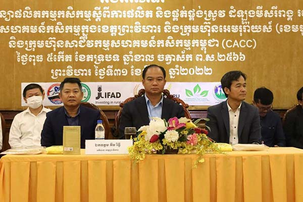 ព្រះវិហារ៖ ក្រុមហ៊ុន២ រួមមានក្រុមហ៊ុន អេម រុរ៉ាយស៍ កម្ពុជា និងក្រុមហ៊ុនសាជីវកម្មសហគមន៍កសិកម្មកម្ពុជា បានបន្ដចុះកិច្ចព្រមព្រៀងស្ដីពីការអនុវត្តន៍ផលិតកម្មកសិកម្មតាមកិច្ចសន្យា ក្នុងការផលិត និងផ្គត់ផ្គង់ស្រូវ និងដំឡូងមីសរីរាង្គ ជាមួយក្រុមផលិត សហគមន៍កសិកម្មក្នុងខេត្តព្រះវិហារ លើបរិមាណសរុប៦៦,០០០តោន សម្រាប់រដូវកាលឆ្នាំ២០២២នេះ ដែលក្នុងនោះក្រុមហ៊ុនអេមរុរ៉ាយស៍កម្ពុជាចុះកុងត្រាបញ្ជាទិញស្រូវសរីរាង្គ លើបរិមាណ ១១,០០០តោន ពីសហគមន៍ចំនួន២១ និងក្រុមហ៊ុនសាជីវកម្មសហគមន៍កសិកម្មកម្ពុជា ចុះកិច្ចព្រមព្រៀងបញ្ជាទិញដំឡូងមីសរីរាង្គ លើបរិមាណ ៥៥,០០០តោន ពីសហគមន៍ចំនួន ១០ក្នុងចំណោមសហគមន៍ទាំង២១ខាងលើ។