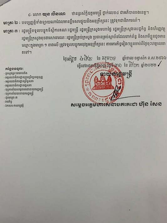 ៤៖ លោក យុន លីនណេ នន្តរស័ក្តិឧត្តមមន្ត្រី ថ្នាក់លេខ៤ ជាអភិបាលរងខេត្ត៕