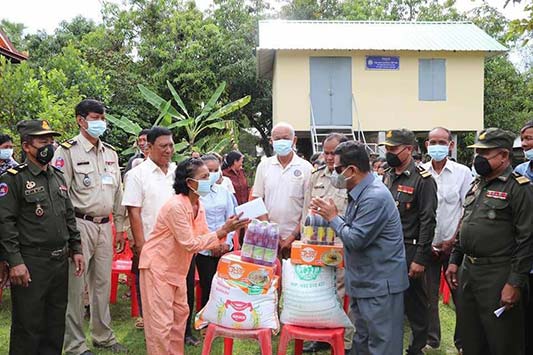 ក្នុងពិធីប្រគល់ផ្ទះថ្មីនៅពេលនេះ ឧត្តមសេនីយ៍ទោ សោម ស៊ុន បាននាំយកនូវអំណោយរបស់ឯកឧត្តម ឧត្តមសេនីយ៍ឯក ហ៊ុន ម៉ាណែត និងលោកជំទាវ ពេជ ចន្ទមុន្នី ផ្ដល់ជូនគាត់បន្ថែមទៀតមាន ៖ អង្ករចំនួន ៥០គីឡូក្រាម មីចំនួន២កេស ទឹកត្រីទឹកស៊ីអ៊ីវចំនួន២យួរ និងថវិកាមួយចំនួនផងដែរ ។