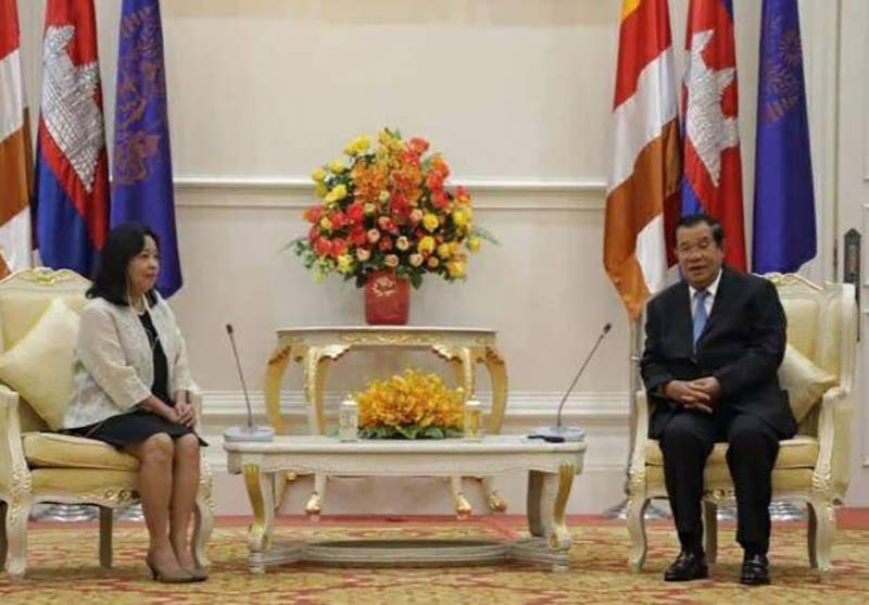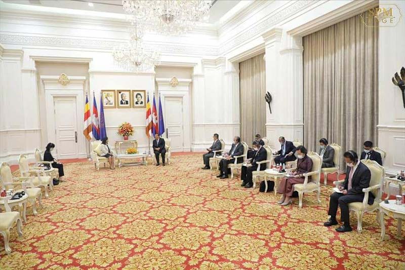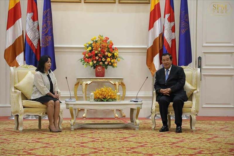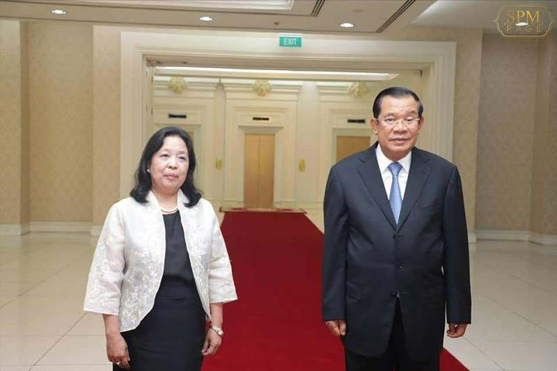 ភ្នំពេញៈ នៅវិមានសន្តិភាព នាព្រឹកថ្ងៃពុធ ៦កើត ខែផល្គុន ឆ្នាំជូត ទោស័ក ព.ស ២៥៦៤ ត្រូវនឹងថ្ងៃទី ១៧ ខែកុម្ភៈ ឆ្នាំ២០២១នេះ សម្ដេចអគ្គមហាសេនាបតីតេជោ ហ៊ុន សែន នាយករដ្ឋមន្ត្រីនៃព្រះរាជាណាចក្រកម្ពុជា បានទទួលជួបពិភាក្សាការងារជាមួយលោកជំទាវ Maria Amelita C.Aquino ឯកអគ្គរដ្ឋទូតថ្មីហ្វីលីពីនថ្មីប្រចាំនៅកម្ពុជា។