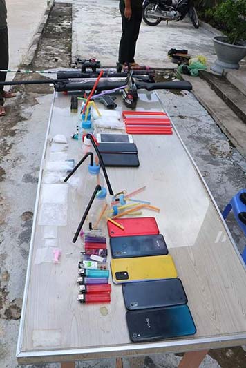 ៩.សម្ភារៈសម្រាប់វេចខ្ចប់ និងសម្ភារៈសម្រាប់ប្រើប្រាស់គ្រឿងញៀនមួយចំនួន ។