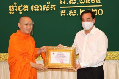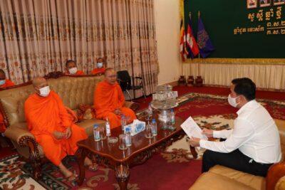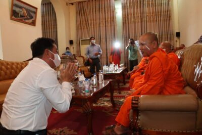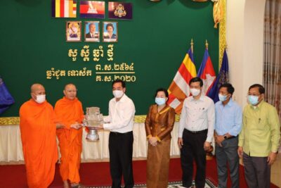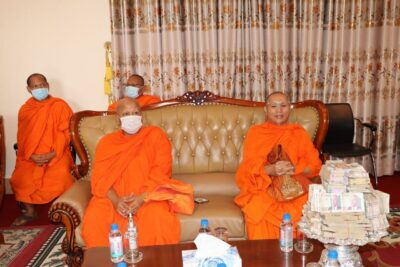 ខេត្តកំពង់ចាម៖ គណសង្ឃនាយកសាលាគណខេត្តកំពង់ចាម និមន្តដឹកនាំដោយព្រះសីលសំវរ ប៊ត តាំងឆេង ព្រះនាគមុនីមេគណខេត្តកំពង់ចាម និងចូលរួមនិមន្តមន្ត្រីសង្ឃក្រុង-ស្រុក១០ទូទាំងខេត្ត នារសៀល ថ្ងៃ ទី ១៧ ខែធ្នូ ឆ្នាំ ២០២០ នេះ បាន នាំយកបច្ច័យមូលនិធិសម្រាប់រាជរដ្ឋាភិបាលកម្ពុជា តាមរយៈ លោក អ៊ុន ចាន់ដា អភិបាលនៃគណអភិបាលខេត្តកំពង់ចាម និងជាប្រធានគណៈកម្មការខេត្តប្រយុទ្ធប្រឆាំងនឹងជំងឺកូវីដ-១៩ ដើម្បីចូលរួមជាមួយសម្ដេចតេជោ ហ៊ុន សែន ក្នុងការទិញវ៉ាក់សាំងប្រឆាំងនឹង ជំងឺ កូវីដ-១៩ ដើម្បីចាក់ជូនប្រជាពលរដ្ឋកម្ពុជាដោយឥតគិតថ្លៃក្នុងជំហានដំបូង។