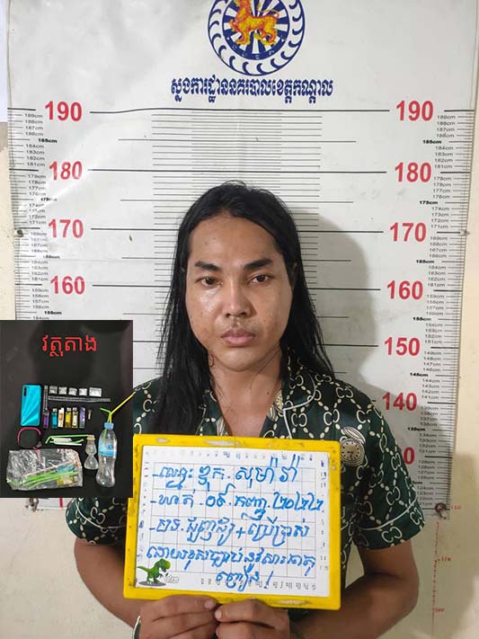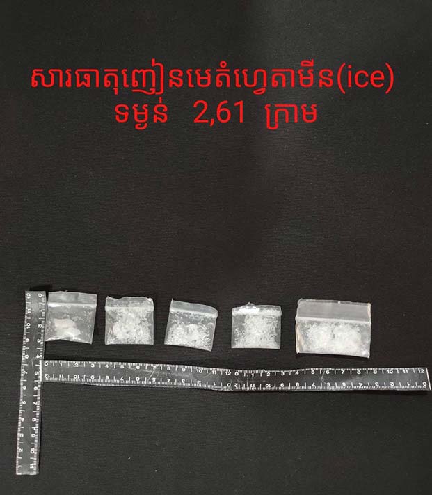 សមត្ថកិច្ចបានអោយដឹងថា ជនសង្ស័យឈ្មោះ ឌុក សុម៉ារ៉ា ហៅឌុក សុខណា ភេទប្រុស ( តែងខ្លួនស្រី) អាយុ៣៤ឆ្នាំ ជនជាតិខ្មែរ មុខរបរសម្អាងការ មានទីលំនៅភូមិសង្វរ ឃុំកំពង់លួង ស្រុកពញាឮ ខេត្តកណ្តាល ។ វត្ថុតាងចាប់យករួមមាន ១-សារធាតុញៀនមេតំហ្វេតាមីន(ice) ចំនួន ០៥ កញ្ចប់តូចទម្ងន់ ២,៦១ក្រាម ,២-ទូរសព្ទចំនួន ០១ គ្រឿង ( ម៉ាកrealmi ) ,៣- ម៉ូតូម៉ាក ZOOMER ) ស្លាកលេខ កំពង់ចាម 1Q- 2537 ពណ៌ខៀវនិង ៤-ឧបករណ៍ប្រើប្រាស់សារធាតុញៀនមួយចំនួន ។