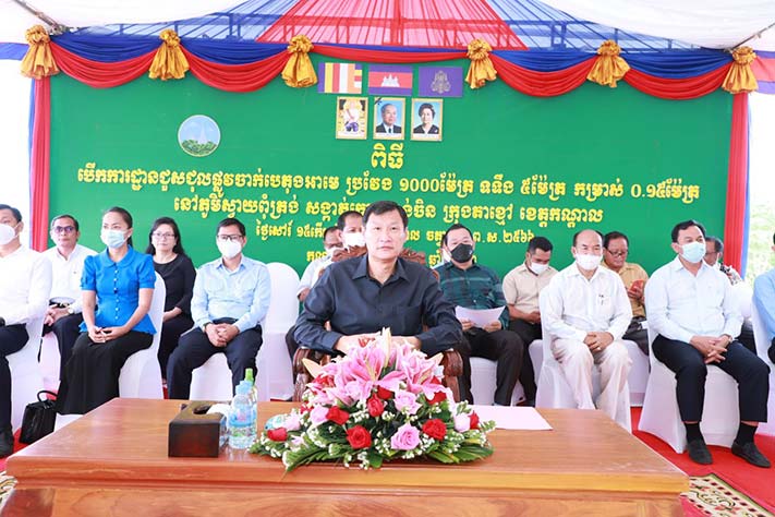 ខេត្តកណ្ដាល៖ ផ្លូវបេតុង១ខ្សែរ ប្រវែង ១០០០ម៉ែត្រ ទទឹង៥ម៉ែត្រ កម្រាស់ ០.១៥ម៉ែត្រ នៅភូមិស្វាយពុំត្រង់ សង្កាត់កោះអន្លង់ចិន ក្រុងតាខ្មៅ ខេត្តកណ្ដាល ត្រូវបានបើកការដ្ឋានសាងសង់ ក្រោមអធិបតីភាពឯកឧត្តម នុតពុធ ដារ៉ា អភិបាលរង ខេត្តកណ្ដាល នាព្រឹកថ្ងៃទី១០ ខែកញ្ញា ឆ្នាំ២០២២។
