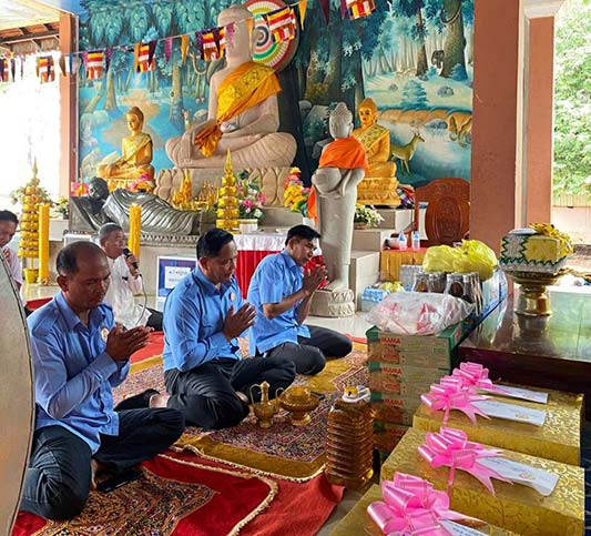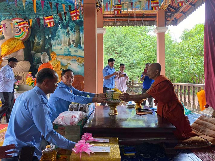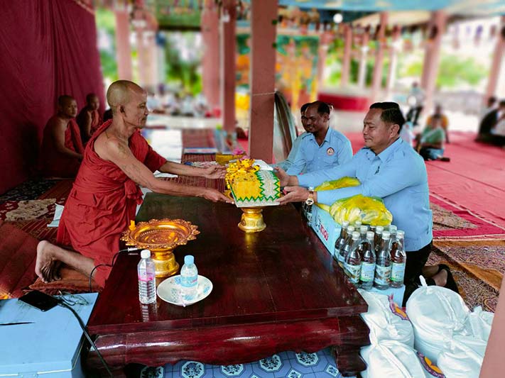 ព្រះវិហារ៖ នាព្រឹកថ្ងៃទី ១២ ខែកញ្ញាឆ្នាំ ២០២២នេះ ឧត្ដមសេនីយ៍ទោ ជូ តុងអាន អនុប្រធានក្រុមការងារចុះជួយ ស្រុកជាំក្សាន្ត ទីប្រឹក្សាសាខា សមាគម សិស្ស និស្សិត បញ្ញវន្ត ក្មេងវត្ត ខេត្តព្រះវិហារ និងជាមេបញ្ជាការរងកងពលធំអន្តរាគមលេខ៣ តំណាង ឯកឧត្ដម ឧត្ដមសេនីយ៍ឯក ស្រី ឌឹក មេបញ្ជាការរងកងទ័ពជើងគោក និងជាមេបញ្ចាការកងពលធំអន្តរាគមលេខ៣ ប្រចាំទឹសទី១ប្រាសាទព្រះវិហារ បានដឹកនាំសមាជិក សមាជិការ អនុសាខាសមាគម រួមនិងពុទ្ធបរិស័ទចំណុះជើងវត្ត នាំនៅទេយ្យទាន បច្ច័យចូលរួមកម្មវិធីកាន់បិណ្យវេនទី ០២ នៅ វត្តមរតកតេជោបុរីស្វរៈ ស្ថិតនៅភូមិធម្មជាតិ សម្ដេច តេជោ ឃុំស្រអែម ស្រុកជាំក្សាន្ត ខេត្តព្រះវិហារ។