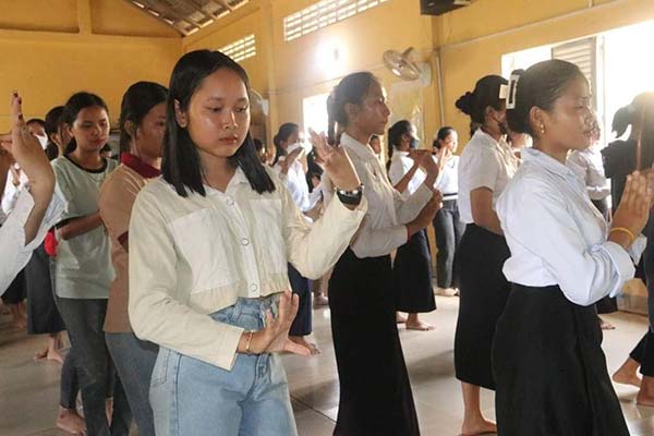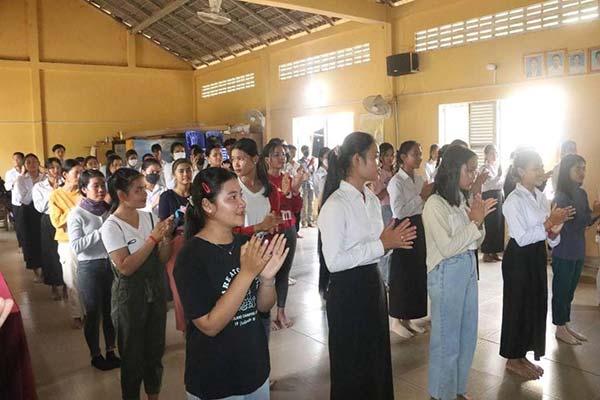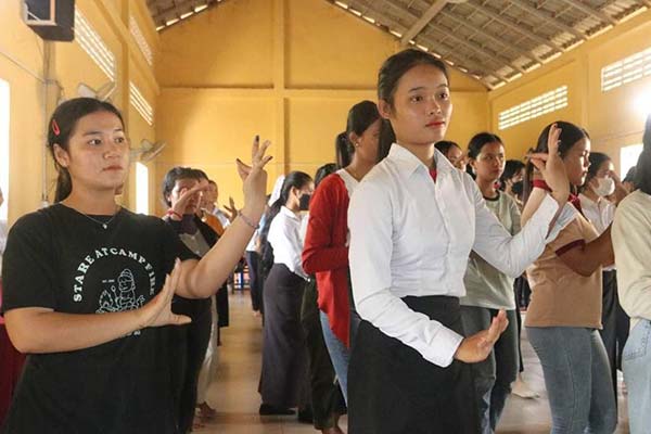 ខេត្តស្វាយរៀង៖នៅរសៀលថ្ងៃអង្គារ ៣រោច ខែភទ្របទ ឆ្នាំខាល ចត្វាស័ក ព.ស.២៥៦៦ ត្រូវនឹងថ្ងៃទី១៣ ខែកញ្ញា ឆ្នាំ២០២២លោក តូច ប៉ូលីវ៉ា អនុប្រធាន សសយកខេត្ត តំណាងលោក ឌី វិជ្ជា ប្រធានសសយកខេត្ត ដោយមានការចូលរួមពីលោក ហែម ស៊ីណា អភិបាល នៃគណៈអភិបាលស្រុករំដួល លោកអភិបាលរងស្រុក លោក អ៉ឹម មេសា ប្រធានអង្គភាពរដ្ឋាករទឹក លោកប្រធានការិយាល័យ អប់រំ យុវជន និង កីឡាស្រុក លោកនាយកវិទ្យាល័យ ហ៊ុន សែន កំពង់ចក លោកគ្រូ អ្នកគ្រូ ព្រះចៅអធិការវត្តល័ក្ខរាជា បានអញ្ជើញជួបសំណេះសំណាលជាមួយសិស្សានុសិស្ស នៃវិទ្យាល័យ ហ៊ុន សែន កំពង់ចក ដែលកំពុងហាត់សមត្រៀមរាំ (រាំវង់ រាំសារ៉ាវ៉ាន់) ដោយសម្លៀកបំពាក់ប្រពៃណីបែបបុរាណ ហូល ផាមួង ដើម្បីត្រៀមរាំអបអរសាទរ ក្នុងឱកាសពិធីបុណ្យកាន់បិណ្ឌ ភ្ជុំបិណ្ឌ និងជូនបងប្អូនប្រជាពលរដ្ឋពុទ្ធបរិស័ទបានទស្សនា ក្នុងបរិវេណ វត្តលក្ខរាជា ស្ថិតនៅក្នុងស្រុករំដួល ខេត្តស្វាយរៀង ។