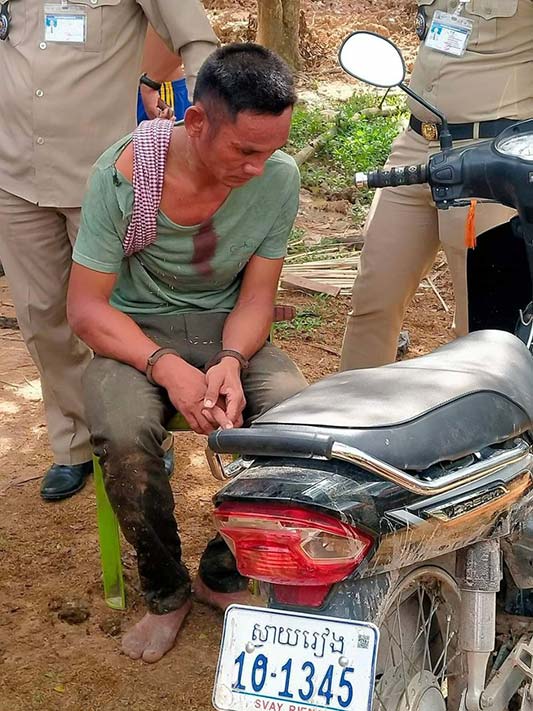 ប្រភពបានបន្តទៀតថា៖ដោយរូបគាត់ទុក្ខសោនៅជាប់ម៉ូតូរួចដើរទៅមួយបន្ទោះក្រោយមកស្រាប់តែលឺសំឡេងបញ្ឆេះម៉ូតូក៏ឡេកមកមើលស្រាប់តែឃើញលោកចោរបានលួចជិះចេញបានប្រមាណពីរទៅ 300ម៉ែត្រម្ចាស់ស្រែកហៅថាចោរៗបង្កអោយភ្ញាក់ផ្អើលដល់អ្នកស្រុកជួយដេញតាមចាប់បានត្រង់ចំណុចផ្លូវប្រឡាយស្ថិតក្នុងភូមិ ត្រពាំងស្មាច់ ឃុំ ខ្សែត្រ ស្រុកកំពង់រោទិ៍ ខេត្តស្វាយរៀង រួចយកមកផ្ទះអនុភូមិនិងហៅសមត្ថកិច្ចប៉ុស្តិ៍រដ្ឋបាលមកទទួលដើម្បីអនុវត្តតាមនីតិវិធីច្បាប់។