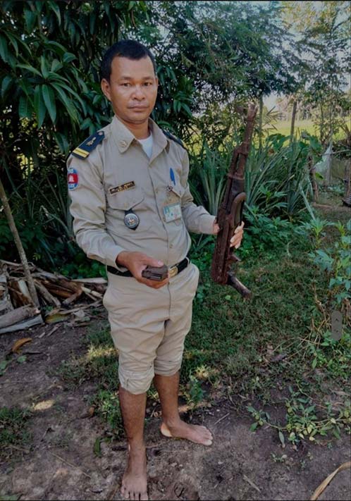 ខេត្តស្វាយរៀង៖មានការភ្ញាក់ផ្អើលយ៉ាងខ្លាំងដល់អ្នកភូមិរាយការណ៍ទៅសមត្ថកិច្ចមូលដ្ឋាន ខណៈដែលដើររកជីករកទំពាំងឫស្សីយកទៅស្លពេលថ្ងៃស្រាប់តែប្រទះឃើញកាំភ្លើងអាកា១ដើមរុំក្នុងបាវពណ៌ខៀវមួយមិនអ្នកណាយកមកផ្លុងចោល។