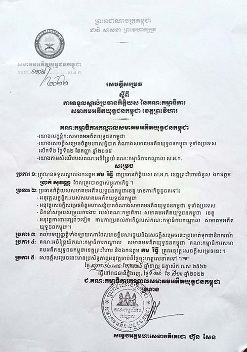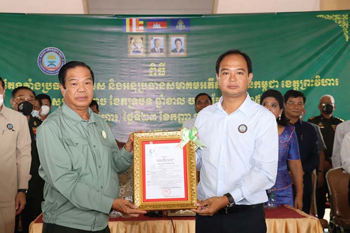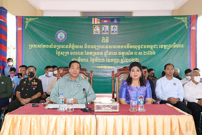 ព្រះវិហារ៖ នាព្រឹក ថ្ងៃ ទី២៣ ខែកញ្ញា ឆ្នាំ២០២២នេះ សមាគមអតីតយុទ្ធជនកម្ពុជាខេត្តព្រះវិហារ បានរៀបចំពិធីប្រកាសតែងតាំងជាផ្លូវការ ឯកឧត្ដម គីម រិទ្ធី អភិបាលនៃគណៈអភិបាលជាប្រធានកិត្តិយស សមាគមអតីតយុទ្ធជនកម្ពុជាខេត្តព្រះវិហារ ជំនួសឯកឧត្ដម ប្រាក់ សុវណ្ណ ត្រូវបានផ្លាស់ផ្ដូភារកិច្ច រួមនិងប្រកាស អនុប្រធានគណៈកម្មាធិការសមាគមអតីតយុទ្ធជនកម្ពុជាខេត្តចំនួន៨រូបទៀត។ ពិធីប្រកាសនេះធ្វើឡើងក្រោមអធិបតីភាព ឯកឧត្ដម គន់ គីម អគ្គលេខាធិការ សមាគមអតីតយុទ្ធជនកម្ពុជា រួមនិងអញ្ជើញចូលរួម ឯកឧត្ដម លោក លោកស្រី ប្រធាន អនុប្រធាន សមាជិក សមាជិការ សមាគមអតីតយុទ្ធជនកម្ពុជា ខេត្តព្រះវិហារទាំងមូលជាច្រើនរូប។ ឯកឧត្ដម ច័ន្ធ សុភត្រ្តា ប្រធានសមាគមអតីតយុទ្ធជនកម្ពុជាខេត្តព្រះវិហារ បានឡើងអានរបាយការណ៍សង្ខែប ជូនគណៈអធិបតីអំពីសកម្មភាពសមាគម អតីតយុទ្ធជនកម្ពុជាខេត្តព្រះវិហារ អនុវត្តនាពេលកន្លងមក ដល់សមាជិកសមាគមទូទាំងខេត្តសម្រេចបានស្ទើតែ១០០%ការអនុវត្តសកម្មភាពធ្វើបានអាស្រ័យដោយមានគោលការណ៍ដឹកនាំ ណែនាំ ចង្អុលបង្ហាញ ដ៍ឈ្លាសវៃ ប៊ិនប្រសព្វ និងការជួយឧបត្ថមគាំទ្រ ពីសំណាក់សម្ដេចអគ្គមហាបតីតេជោ ហ៊ុន សែន នាយករដ្ឋមន្រ្តីនៃកម្ពុជា និងជាប្រធានសមាគមអតីតយុទ្ធជនកម្ពុជា និងដោយមានការដឹកនាំចង្អុលបង្ហាញដោយផ្ទាល់ពីសំណាក់ ឯកឧត្ដម ទេសរដ្ឋមន្រ្តី អគ្គលេខាធិខាសមាគមអតីតយុទ្ធជនកម្ពុជា ទាំងស្មារតីនិងសម្ភារៈ ម្យាងទៀតយើងបានសហការយ៉ាងល្អប្រសើរក្នុងគណៈកម្មាធិការសមាគមអតីតយុទ្ធជនកម្ពុជាខេត្ត ជាមួយអាជ្ញាធរមូលដ្ឋានគ្រប់ស្ថាប័នធ្វើអោយសមាគមអតីតយុទ្ធជនកម្ពុជាខេត្តសម្រេចជោគជ័យគួជាទីមោទនៈ។ បច្ចុប្បន្នមានអតីតយុទ្ធជនសារុប២៧៩៨នាក់ទូទាំងខេត្ត ក្នុងនោះបានចូលជាសមាជិក១៩៦៨នាក់ ជនពិការ៨២៩នាក់ និវត្តជន៩៨៨នាក់ ជនបាត់បង់សមត្ថភាពការងារ៥៨នាក់ និងបន្តការងារជូនពួកគាត់មានបន្តបន្តាប់ ដូចជាបែកចែកដីធ្លី ធ្វើផ្ទះ ផ្ដល់ថវិការបេឡាមរណៈសង្រ្គោះ ផ្ដល់ស្បៀងអាហារាល់ខែសម្រាប់គាត់ក្នុងការរស់នៅផងដែរ៕ ឯកឧត្ដម គីម រិទ្ធីប្រធានកិត្តិយស សមាគមអតីតយុទ្ធជនកម្ពុជាខេត្តព្រះវិហារថ្មី បានឡើងធ្វើការប្ដេជ្ញាចិត្តទទួលស្គាល់យកនៅការងារសមាគមអតីតយុទ្ធជនកម្ពុជាធ្វើអោយកាន់តែមានប្រសិទ្ធភាពខ្ពស់និងស្របតាមគោលការណ៍របស់ថ្នាក់ដឹកនាំ ជាពិសេសដោះស្រាយដីធ្លី ធ្វើផ្ទះនិងមើលថែទាំពួកគាត់អោយបានល្អប្រសើរ ចំពោះសមាជិកសមាគមអតីតយុទ្ធជនកម្ពុជារបស់យើងអោយស្របតាមផែនការរបស់ប្រមុខរាជរដ្ឋាភិបាល ដែលមានសម្ដេច តេជោ នាយករដ្ឋមន្រ្តីនៃកម្ពុជា និងជាប្រធានសមាគមអតីតយុទ្ធជនកម្ពុជា។