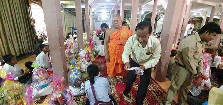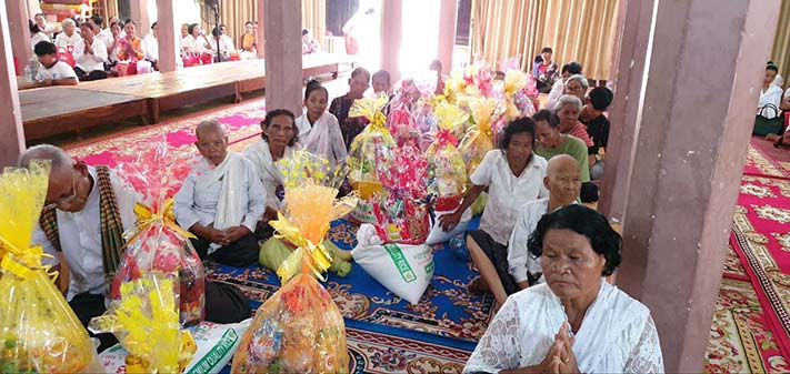 អំណោយដែលចែកជូនដល់លោកយាយ លោកតានិងប្រជាពលរដ្ឋទាំង៥ភូមិ ក្នុងឃុំព្រៃគគីរ ស្រុកចន្ទ្រា នៅវត្តព្រៃគគីរដួច ចំនួន ៧០គ្រួសារ ក្នុង១គ្រួសារទទួលបាន រួមមានអង្ករ២៥គីឡូ គ្រឿងឧបភោគបរិភោគមួយចំនួន និងថវិកា ៥០,០០០រៀល សរុបថវិកា ៣,៥០០,០០០រៀល ដែលជាអំណោយរបស់ព្រះវិមិត្តសត្ថា ជុំ ចន្ថា ព្រះរាជាថ្នាក់កិត្តិយស ព្រះវិន័យធរគណខេត្ត និងជាព្រះនាយករងពុទ្ធិកវិទ្យាល័យស្វាយរៀង និងព្រះគ្រូសិរីវុឌ្ឍាភិរង្សី សូរ គន្ធា ព្រះសមុហ៍អនុគណស្រុកចន្ទ្រា និងជាព្រះគ្រូចៅអធិការវត្តព្រៃគគីរដួច ។