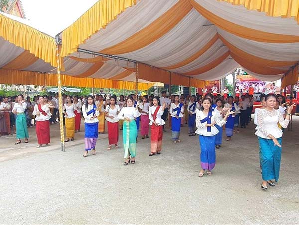 ក្នុងឪកាសនោះផងដែរឯកឧត្ដម ម៉ែន អេង អភិបាលរងខេត្តបានអញ្ជើញជួបសំណេះសំណាលជាមួយសិស្សានុសិស្ស នៃវិទ្យាល័យ ហ៊ុន សែន កំពង់ចក និង ក្រុមសិស្សានុសិស្សវិទ្យាអាល័យ ហ៊ុន សែន កំពង់រោទិ៍ ដែលបានមករាំលេងជាចង្វាក់ រាំវង់ រាំក្បាច់ រាំសារ៉ាវ៉ាន់ ដោយស្លៀកសម្លៀកបំពាក់ជាប្រពៃណីខ្មែរ បែបបូរាណ មានហូល ផាមួង ដើម្បីអបអរសាទរ ក្នុងឱកាសពិធីបុណ្យកាន់បិណ្ឌ ភ្ជុំបិណ្ឌ ដើម្បីរាំជូនបងប្អូនប្រជាពលរដ្ឋពុទ្ធបរិស័ទបានទស្សនា ក្នុងបរិវេណ វត្តលក្ខរាជា ស្ថិតនៅក្នុងឃុំកំពង់ចកស្រុករំដួល ខេត្តស្វាយរៀង។