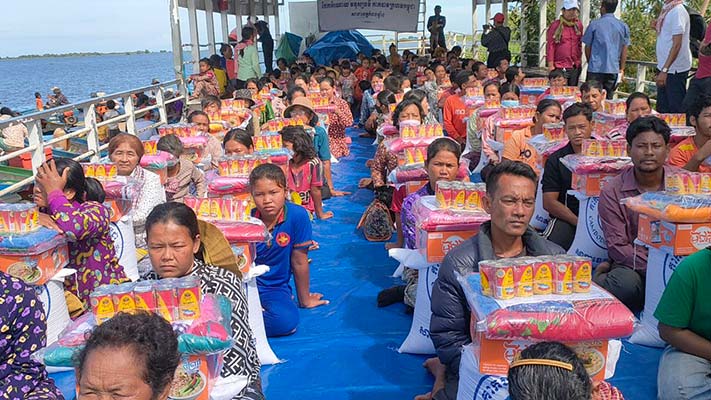 ផលដាំ ដំណាំរួមផ្សំ ចិញ្ចឹមសត្វ ពេលទឹកស្រកទៅវិញដើម្បីលើកកំពស់កំរិតជីវភាពគ្រួសារ ឱ្យកាន់ប្រសើរឡើង ។ជាពិសេសសូមបងប្អូប្រជាពលរដ្ឋទៅចាក់វ៉ាក់សាំងកូវីដ១៩ ឱ្យបានគ្រប់ៗគ្នា ចាប់ពីដូសទី១ ដល់ដូសទី៣ឬដូសជំរុញ ដើម្បីកាត់បន្ថយការឆ្លង និងហានិភ័យនៃការស្លាប់ដោយមេរោគកូវីដ១៩ ។ អណោយមនុស្សធម៌បានផ្ដល់ជូន១គ្រួសារៗទទួលបាន៖ អង្ករ៣០ គីឡូក្រាម,មី១កេស,ត្រីខ១យួរ ឃីត១កញ្ចប់ និងថវិកា២ម៉ឺនរៀល ៕