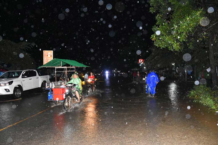 ខេត្តប៉ៃលិន ៖ មានសេចក្តីរាយការណ៍បានឱ្យដឹងថា គេសង្កេតឃើញចាប់តាំងពីថ្ងៃរសៀលរហូតដល់វេលាម៉ោង៨ និង ០៣នាទីយប់ថ្ងៃទី០២ ខែតុលា ឆ្នាំ២០២២ មេឃនៅតែបន្តភ្លៀងធ្លាក់ខ្លាំងឡើងៗ ជាប់ជានិច្ច បង្កទៅជាជំនន់ទឹកភ្លៀងហូរចូលក្នុងផ្សារសាលាក្រៅ ស្រុកសាលាក្រៅ និងលិចលង់ភូមិនានាជាច្រើននៅក្បែរនោះដែរ បណ្ដាលឱ្យទឹកចូលទៅក្នុងផ្ទះរបស់ប្រជាពលរដ្ឋ អណ្តែតសម្ភារៈផ្ទះបាយ ដូចជា ចាន ឆ្នាំង ធុងជ័រ និងធ្វើឱ្យសើមសម្លៀកបំពាក់ជាដើម។ ប្រភពព័ត៌មានបានឱ្យដឹងទៀតថា ទន្ទឹមនឹងនេះដែរ ទឹកភ្លៀងដ៍ធំ១មេនេះ បានធ្វើឱ្យលិចភូមិមួយចំនួនស្ថិតនៅក្នុងឃុំស្ទឹងត្រង់ ស្រុកសាលាក្រៅ ខេត្តប៉ៃលិន ធ្វើឱ្យប្រជាពលរដ្ឋជម្លៀសរកទីទួលសុវត្ថិភាព។