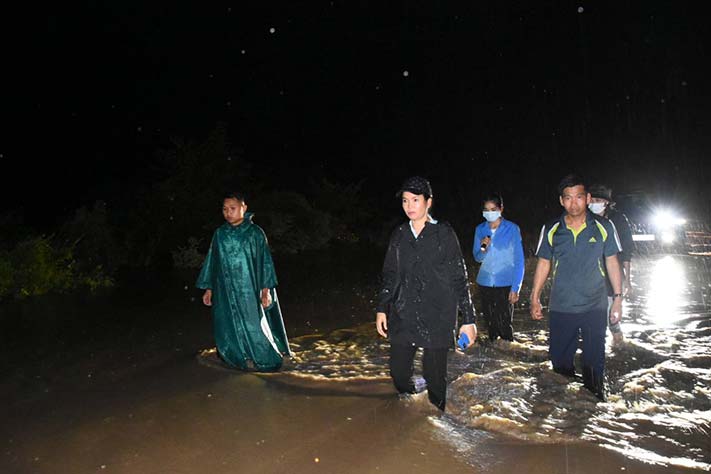 ប្រភពបានបញ្ជាក់ទៀតថា លោកជំទាវ បាន ស្រីមុំ អភិបាលខេត្តប៉ៃលិន បានអញ្ជើញចុះពិនិត្យស្ថានភាពជំនន់ទឹកភ្លៀង និងចាត់ចែងកម្លាំងក្រុមការងារ អាជ្ញាធរមូលដ្ឋានជួយអន្តរាគមន៍ ដល់ប្រជាពលរដ្ឋភ្លាមៗ ខណៈដែលភ្លៀងនៅតែបន្តធ្លាក់ឥតឈប់ បណ្តាលអោយហូរលិចកំណាត់ផ្លូវជាតិលេខ៥៩ ចំណុចទីប្រជុំជនស្រុកសាលាក្រៅ និងកំណាត់ផ្លូវតភ្ជាប់ពីផ្លូវជាតិលេខ៥៩ ឆ្ពោះទៅទីប្រជុំជនឃុំស្ទឹងត្រង់ធ្វើឱ្យម្នាក់ៗស្ទើរតែត្រៀមខ្លួនមិនទាន់ ក្នុងការប្រមូលសម្ភារៈកុំឱ្យអណ្តែតទឹក។ លើសពីនេះលោកជំទាវអភិបាលខេត្ត ក៍បានចុះទៅពិនិត្យមើល ប្រជាពលរដ្ឋដែលបានរងគ្រោះដោយការហូរច្រោះដីភ្នំបាក់មកលើលំនៅដ្ឋាន ទៅរកទីមានសុវត្ថិភាព បានរួចផុតអាយុជីវិតទាន់ពេលវេលា។
