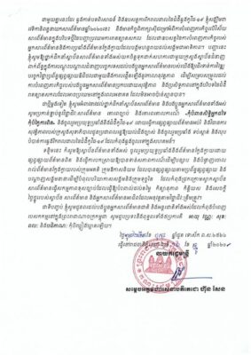 ក្នុងសារលិខិតនេះដែរ សម្ដេចតេជោ ហ៊ុន សែន ក៏បានអំពាវនាវដល់ថ្នាក់ដឹកនាំសារព័ត៌មាន និងបងប្អូនអ្នកសារព័ត៌មានទាំងអស់ សូមប្រកាន់ខ្ជាប់នូវវិជ្ជាជីវៈសារព័ត៌មាន គោរពច្បាប់ និងគោរពគោលការណ៍ កុំបំពានសិទ្ធិអ្នកដទៃកុំបំភ្លៃការពិត និងចូលរួមប្រយុទ្ធប្រឆាំងនឹងជំងឺកូវីដ១៩ ដោយធ្វើការផ្សព្វផ្សាយព័ត៌មានអប់រំ និងវិធានការសុវត្ថិភាពរបស់ក្រសួងសុខាភិបាល ជូនប្រជាពលរដ្ឋឱ្យយល់ដឹងច្បាស់ និងចូលរួមប្រឆាំង ទប់ស្កាត់ និងលុបបំបាត់ ការឆ្លងរីករាលដាល នៃជំងឺកូវីដ១៩ ដែលកំពុងឆ្លងចូលទៅក្នុងសហគមន៍ ។