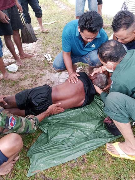 ប្រភពបានបន្តទៀតថា៖ក្រោយពីបានទទួលព័ត៌មានខាងលើនេះភ្លាមនោះ កម្លាំងនគរបាលប៉ុស្តិ៍រដ្ឋបាលឃុំញរ សហការជាមួយជំនាញនគរបាលស្រុក កំពង់រោទិ៍បានចុះពិនិត្យដល់កន្លែងកើតហេតុបានឃើញថា មានឈ្មោះ កឹម សាន ភេទ ប្រុស អាយុ.៦៩.ឆ្នាំ មានទីលំនៅភូមិ រោទិ៍ ឃុំ ញរ ស្រុក កំពង់រោទិ៍ ខេត្ត ស្វាយរៀង មុខរបរ កសិករ បានទៅឃ្វាលក្របីនៅចំណុចខាងកេីតភូមិរោទិ៍ ព្រំប្រទល់និងភូមិព្រៃចារ ឃុំខ្សែត្រចម្ងាយពីផ្ទះរបស់ខ្លួនប្រហែល៦០០ម៉ែត្រពេលនោះស្រាប់តែមានភ្លៀងធ្លាក់លាយឡំនិងខ្យល់បោកបក់ខ្លាំងៗ ក៏បាននាំគ្នាទៅជ្រកក្រោមដេីមអាកាស្យាដែលមានគ្នា៦នាក់ស្រី២នាក់ជ្រកបានមួយសន្ទុះក្រោយមកក៏មានរន្ទះបាញ់មួយគ្រាប់លឺក្ឌាំងក្រហមងឹតមេឃបណ្តាលឲ្យស្លាប់បុរសរងគ្រោះឈ្មោះ កឹម សាន នៅនឹងកន្លែងចំណែកឈ្មោះ ង៉ា សុផាន់ណា ភេទប្រុស អាយុ ១៧ឆ្នាំនៅភូមិឃំុជាមួយគ្នា(របួសស្រាល)កំពុងព្យាបាលនៅមន្ទីពេទ្យឯកជនផ្សាកំពង់រោទិ៍ ។