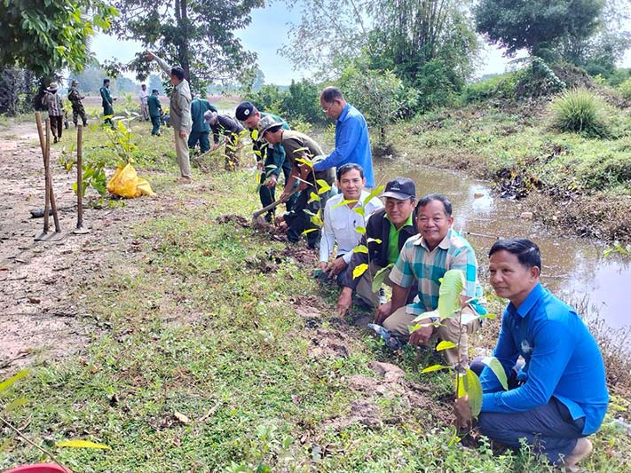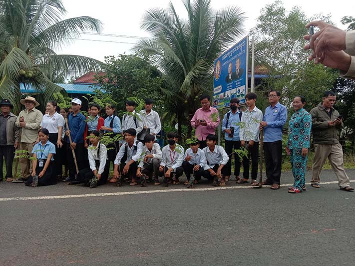 ទន្ទឹមនេះលោកក៏បានជំរុញដល់បងប្អូនពលរដ្ឋបន្តទៅទទួលការចាក់វ៉ាក់សាំងទាំងដូសមូលដ្ឋាន និងដូសជំរុញឲ្យបានគ្រប់ៗគ្នា ដើម្បីបង្កើត និងពង្រឹងភាពស៊ាំនៅក្នុងសហគមន៍របស់យើងទប់ទល់នឹងជំងឺឆ្លងកូវីដ-១៩ និងសូមមានការប្រុងប្រយ័ត្នដោយបន្តអនុវត្តឲ្យបានខ្ជាប់ខ្ជួននូវវិធានការ ៣ការពារ ៣កុំ និងត្រូវចូលរួមអនុវត្តភូមិឃុំមានសុវត្ថិភាពទាំង៧ចំណុចព្រមទាំងទប់ស្កាត់និងលុបបំបាត់រាល់ល្បែងសុីសងខុសច្បាប់គ្រប់ប្រភេទ។ ហើយការដាំដើមឈើនេះគឺមាន២លើកដោយ៖- លើកទី១ ដាំបាន៣.៥០០ដើម- លើកទី២ ដាំបាន ៤.០០០ដើម (ថ្ងៃទី៦ខែតុលា ឆ្នាំ២០២២នេះ)ហើយបានដាំតាមដងផ្លូវជាតិលេខ១៣ពីព្រំប្រទល់ស្រុករមាសហែកខេត្តស្វាយរៀងជាមួយស្រុកកំចាយមាខេត្តព្រៃវែងដល់ស្រុករំដួលខេត្តស្វាយរៀងនិងតាមបណ្តាល ឃុំគោលដៅ សាលារៀន វត្តអារាមប្រាសាទជីហោ អង្គភាពកងកម្លាំង សាលាឃុំ។ល។ ហើយកូនឈើយកមកដាំនាពេលនេះ រួមមាន កូនក្ងោក កូនក្រញូង ប៉េង ធ្នង់ កូនឈើទាល សរុប ជាង៨.០០០ ដើមហើយកូនឈើនេះបានមកពីការឧបត្ថម្ភរបស់ផ្នែករដ្ឋព្រៃឈើរមាសហែក៕