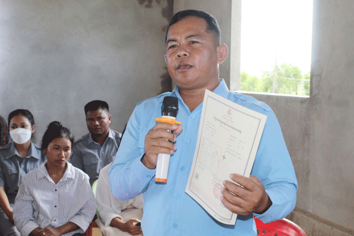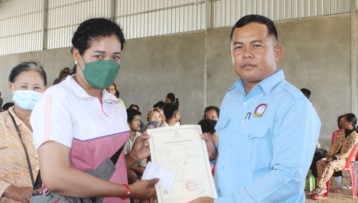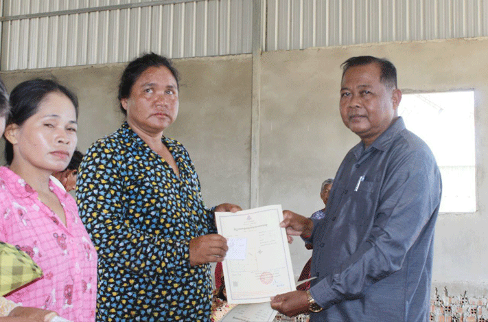 កំពង់ធំ÷ប្រជាពលរដ្ឋរស់នៅក្នុងស្រុកប្រាសាទបល្ល័ង្ក ខេត្តកំពង់ធំ ទទួលបានវិញ្ញាបនបត្រសម្គាល់ម្ចាស់អចលនវត្ថុ ចំនួនក្បាលដី១០១៣ និង៩៧២បណ្ណ័ផ្ដល់ជូនដោយលោក គង់ គេង អភិបាលរងស្រុកប្រាសាទបល្ល័ង្កនិង លោក ជិន ហ៉ីន ប្រធានក្រុមប្រឹក្សាឃុំសាលាវិស័យ កាលពីម្សិលមិញ នៅក្នុងភូមិបុស្សវែង ឃុំសាលាវិស័យ ស្រុកប្រាសាទបល្ល័ង្ក ខេត្តកំពង់ធំ។ ថ្លែងក្នុងពិធីនោះដែរលោក គង់ គេង មានប្រសាសន៍លើកឡើងថា វិញ្ញាបនបត្រសម្គាល់ម្ចាស់អចលនវត្ថុនេះ ជាប្រភេទប័ណ្ណថ្មី សម្រាប់ស្កេនស្វែងរកទិន្នន័យវិញ្ញាបនបត្រសម្គាល់ម្ចាស់អចលនវត្ថុ នៅលើប្រព័ន្ធគ្រប់គ្រងរបស់ក្រសួងដែនដី នគរូបនីយកម្ម និងសំណង។ ថ្នាក់ដឹកនាំបានបន្តថា វិញ្ញាបនបត្រសម្គាល់ម្ចាស់អចលនវត្ថុនេះ ជាអាយុជីវិតរបស់យើង ពិតជាមានតម្លៃណាស់ ដែលជាទ្រព្យសម្បត្តិកម្មសិទ្ធិរបស់យើង។ សូមរក្សាទុកដាក់ឱ្យបានល្អ សូមកុំលក់ដូរ ត្រូវចេះប្រមូលផលពីដីធ្លីរបស់យើង ទៅតាមរដូវកាលនៃការបង្កបង្កើនផល ពីព្រោះដីមិនអាចកើតឡើងទេ ប៉ុន្តែមនុស្សអាចកើតបានជារៀងរាល់ថ្ងៃ គឺទុកសំរាប់ចែកជូនកូនចៅយើងជំនាន់ក្រោយ។ លោក ជិន ហ៉ីន ប្រធានក្រុមប្រឹក្សាឃុំសាលាវិស័យសូមកោតសរសើរខ្ពស់អំពីកិច្ចសហប្រតិបត្តិការ រវាងលោកប្រធានសូរយោដី និងមន្ត្រីសូរិយោដីទាំងអស់ដែលបានខិតខំបំពេញតួទី/ភារកិច្ច ចុះបញ្ជីដីធ្លីជាលក្ខណៈប្រព័ន្ធ ជូនបងប្អូននៅក្នុងឃុំសាលាវិស័យបានជំនួន០៦ភូមិ ដោយមិនគិតអំពីផលលំបាក ដូចជារដូវភ្លៀង រដូវទឹកជំនន់អំឡុងកូវីដ-១៩ កំពុងតែផ្ទុះ។ ពិសេសពាក់ព័ន្ធនឹងការប្រមូលទិន្នន័យ និងឯកសារផ្សេងៗដែលជាផលលំបាកដោយប្រជាពលរដ្ឋមួយចំនួនមិនយល់ច្បាស់អំពីការចុះបញ្ជីដីធ្លី ជាលក្ខណៈប្រព័ន្ធបងប្អូនម្ចាស់ដីមួយចំនួននៅស្រុកឆ្ងាយ និងបងប្អូនក្នុងមូលដ្ឋានមួយចំនួនបានធ្វើចំណាកស្រុក។ លោកបានបន្តទៀតថា មកដល់ពេលនេះ ស្ថានភាពទឹកនៅក្នុងភូមិសាស្ត្រស្រុកយើងបានស្រកបន្តិចហើយ តែយើងត្រូវប្រុងប្រយ័ត្នខ្ពស់ព្រោះនៅមានឥទ្ធិពលនៃព្យុះបន្តបោកបក់មកលើប្រទេសកម្ពុជាយើង អាចនឹងមានទឹកជន់កើតឡើង។ ទទន្ទឹមនឹងនោះអាជ្ញាធរឃុំក៏ដូចជាអាជ្ញាធរស្រុក ក៏បានត្រៀមរៀបចំទីទួលសុវត្ថិភាព បន្តចុះមូលដ្ឋាន ដើម្បីពិនិត្យមើលស្ថានភាពទទឹកនៅក្នុងស្រុក និងពិនិត្យមើលផលប៉ះពាល់ស្រូវដំណាំរបស់បងប្អូនប្រជាពលរដ្ឋដើម្បីជួយប្រជាពលរដ្ឋបានទាន់ពេលវេលា ។ លើសពីនេះទៀតថ្នាក់ដឹកនាំឃុំ ក៏បានអំពាវនាវដល់ប្រជាពលរដ្ឋទាំងអស់ សូមសូមរក្សាអនាម័យ ផឹកស្អាតហូបស្អាត ជាពិសេស ត្រូវមើលថែក្មេងៗឲ្យបានល្អ ដើម្បីចៀសផុតពីការលង់ទឹក ឆ្លងចរន្តអគ្គិសនី ក៏ដូចជាការការពារពីសត្វអសិរពិសនានាខាំឬទិចជាដើម។ ម្យ៉ាងវិញទៀ