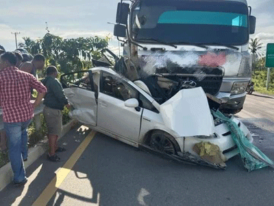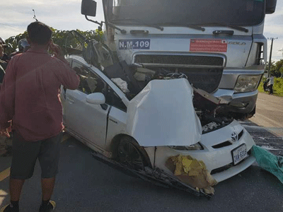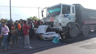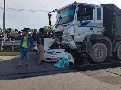 បាត់ដំបង:យ៉ាងហោចណាស់មានមនុស្សបីនាក់បានស្លាប់ភ្លាមៗក្នុងរថយន្តយ៉ាងអនោចអធម្មត្រៃលែងខណៈកំពុងបើកបររថយន្តឆ្លងផ្លូវហាយវេ ត្រូវរថយន្តធន់ធំដឹកថ្មបើកបុកពេញទំហឹងអូសរាប់សិបម៉ែត្រ។ហេតុការណ៍គ្រោះថ្នាក់ចរាចរណ៍នេះ កើតឡើងតាមបណ្តោយផ្លូវហាយវេ ភូមិកំពង់អំពិល ឃុំវត្តតាម៉ឹម ស្រុកសង្កែ ខេត្តបាត់ដំបង នាវេលាម៉ោង 03និង30នាទីល្ងាច ថ្ងៃទី០៧ ខែតុលា ឆ្នាំ២០២២។យោងតាមប្រភពក្បែកន្លែងកើតហេតុបានឲ្យដឹងថា មុនពេលកើតហេតុគេឃើញរថយន្តមួយគ្រឿងម៉ាក់ព្រុសពណ៌ស ពាក់ផ្លាកលេខភ្នំពេញ2AW.6316 បើកបរដោយបុរសម្នាក់និងរួមដំណើរបុរសពីរនាក់ទៀតធ្វើដំណើទិសដៅពីជើងទៅត្បូងលុះមកដល់កន្លែងកើតហេតុខណះរថយន្តព្រុសកំពុង បើកឆ្លងផ្លូវ ស្រាបតែមានរថយន្តធំមួយគ្រឿង(ដឹកថ្ម)ពណ៌ទឹកប្រាក់ពាក់ផ្លាកលេខភ្នំពេញ 3G-1109 បើកបរដោយបុរសម្នាក់មិនស្គាល់អត្តសញ្ញាណបើកក្នុងល្បឿនលឿនពីរលិចទៅកើត។បានជ្រុលទៅបុករត់យន្តព្រុសពេញទំហឹងអូករាប់សិបម៉ែត្របណ្ដាលឲ្យអ្នកបើករថយន្តព្រូសនិងអ្នករួមដំណើស្លាប់ទាំងបីនាក់ភ្លាមៗតែម្ដង ចំណែករថយន្តខូចខាតយ៉ាងដំណាំ។