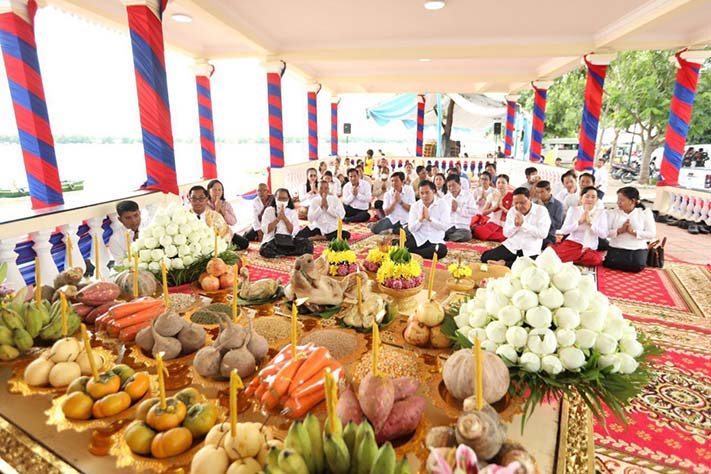 ( កំពង់ចាម ): ឯកឧត្តម អ៊ុន ចាន់ដា អភិបាលនៃគណៈអភិបាលខេត្តកំពង់ចាម និង ឯកឧត្តម ខ្លូត ផន ប្រធានក្រុមប្រឹក្សាខេត្ត អញ្ជើញចូលរួមរួមក្នុងពិធីក្រុងពាលីសុំសេចក្ដីសុខពីម្ចាស់ទឹក ម្ចាស់ដី ឲ្យតាមជួយថែរក្សាការពារ ក្នុងពិធីបុណ្យអុំទូក បណ្តែតប្រទីប តាំងពិព័រណ៍ “ភូមិមួយផលិតផលមួយ” ខេត្តកំពង់ចាម ឆ្នាំ ២០២២ ។ ដោយក្នុងពិធីនេះមានការចូលរួមពីសំណាក់ ឯកឧត្តម លោកជំទាវ សមាជិកក្រុមប្រឹក្សាខេត្ត ឯកឧត្តម លោកជំទាវអភិបាលរងខេត្ត លោកនាយក នាយករងរដ្ឋបាលសាលាខេត្ត ថ្នាក់ដឹកនាំមន្ទីរ អង្គភាពជុំវិញខេត្ត អាជ្ញាធរក្រុងកំពង់ចាម និងមន្ត្រីពាក់ព័ន្ធមួយចំនួន នាព្រឹកថ្ងៃទី ៩ ខែតុលា ឆ្នាំ ២០២២ នេះ ។ សូមបញ្ជាក់ថា ពីធីអំអូកបណ្ដែតបនរទី និងតាំពិព័រណ៍នេះ ប្រារព្វធ្វើឡើងនាថ្ងៃទី ១០ តុលា ២០២២ នេះ ដោយទូកដែលនឹងមកចូលរួមប្រណាំង សរុប ចំនួន ៤៥ ទូក ក្នុងនោះមានទូក ង និងទូកខ្នាតអន្តរជាតិ ។ ដោយឡែកចំពោះការដាក់តាំងពិព័រណ៌ និងការប្រគំតន្ត្រីខ្នាតធំ និងចាប់ដំណើរការពីរសៀលថ្ងៃទី ៩ នេះតទៅ រហូតដល់ថ្ងៃទី ១១ ខែតុលា គឺមានរយៈពេល៣ ថ្ងៃ ៕